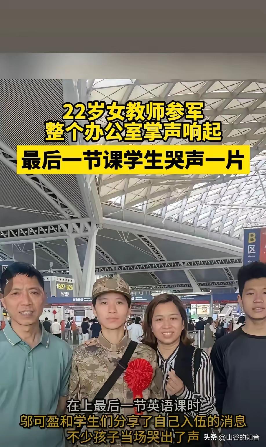 23岁女教师辞掉铁饭碗去当兵!最后一节课全班哭着喊她军装照要火 23岁女教师辞掉铁饭碗去当兵!最后一节课全班哭着喊她军装照要火 深圳龙华街道23岁的杨崇漪最近做了个出人意料的选择:辞掉初中老师的工作,报名参军入伍!这姑娘心里一直揣着当兵的梦,大学时体检因为身高差了零点几厘米,遗憾地和军营失之交臂。毕业后她当起了老师,每天认真给学生上课,可心里那团军营的火从没灭过。 最后一节课的教室,连空气都裹着沉甸甸的不舍。粉笔灰在暖黄的灯光里飘着,落在她刚写好的板书上,也落在学生们泛红的眼眶里。 平日里叽叽喳喳的孩子们,此刻都低着头攥着衣角,几个女生的眼泪啪嗒啪嗒掉在课本上,连平时最调皮的男生,都红着眼眶不敢抬头看她。 当她笑着说出“以后不能再陪大家上课了”的瞬间,全班突然齐声喊出“老师我们舍不得你”,声音里的哽咽,听得人心头一酸。 她拿出提前准备好的军装照,照片里的她身姿笔挺,眼神坚定,全班的惊叹声混着哭声,在小小的教室里炸开。 谁能想到,这张军装照背后,藏着她藏了整整五年的执念。 大学体检时那零点几厘米的差距,像一道小小的坎,硬生生拦住了她的军营梦。那段日子她躲在宿舍里偷偷难过,却也把这份向往悄悄埋在心底,没让遗憾变成放弃。 毕业后她选择当老师,三尺讲台的安稳日子里,她认真备课、耐心育人,把对学生的责任扛在肩上。 可每到夜深人静,军装的模样、军营的口号,还是会一遍遍闯进脑海,那团火,从来没熄灭过,反而越烧越旺。 身边人都劝她“老师是铁饭碗,别冲动”,可只有她自己知道,安稳从来不是她想要的全部。 当老师的日子里,她教学生明事理、有担当,可心里也盼着能亲自去践行这份担当,去穿上那身橄榄绿,守着祖国的山河。 零点几厘米的差距没能拦住她,安稳的工作也留不住她,因为心里的热爱,从来不会被现实的小遗憾打败。 这份不被世俗定义的勇敢,才是最动人的地方。 孩子们哭着喊她,不仅是舍不得一位好老师,更是为她的选择骄傲。 他们看着照片里英姿飒爽的老师,突然明白,原来老师不只是站在讲台前的人,也可以是奔赴远方、守护家国的战士。 这张军装照,不是告别,而是她把热爱变成行动的证明,也是给学生们上的最后一课:青春就该追着光走,勇敢去做自己想做的事。 有人说年轻人该求稳,可杨崇漪用行动告诉我们,青春的意义从不是安稳度日。 心里有梦,脚下就有路;热爱在胸,前路就有光。放弃看似光鲜的铁饭碗,奔赴军营,这份勇气值得所有人点赞。 她的故事也让更多人看到,年轻一代的心中,始终藏着对家国的赤诚,藏着不服输的热血。 这张军装照要火的,不只是她的选择,更是这份藏在青春里的赤诚与担当。 各位读者你们怎么看?欢迎在评论区讨论。