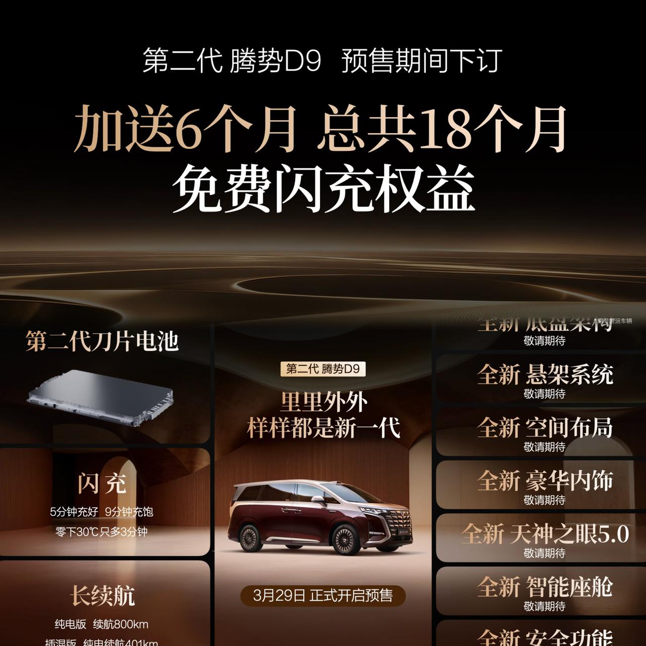 上强度!9分钟满电、续航800km!第二代腾势开启D9预售 3月29日,第二代