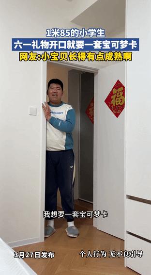 安徽,一位妈妈在网上晒出六年级的儿子提前朝她要六一儿童节礼物,不过网友却把注意力都放在了男孩一米八五的身高和长相上面。网友:你家小宝贝长得有点成熟啊。 男孩的脸庞,虽带着少年人独有的青涩轮廓。 却因为身高太过突出,再加上线条偏硬朗的五官,任谁第一眼瞧着,都压根不会往“小学生”上联想。 男孩就那么随意地靠在门框上,犹豫了几秒,他抬着脑袋看向妈妈,轻声开口: “妈,六一儿童节,我想要一套宝可梦卡牌,行不行呀?” 说完后,他眼神亮晶晶的,一瞬不瞬地盯着妈妈的脸,那股期待劲儿都要从眼睛里溢出来,就怕听到妈妈说“不”。 听到这话,男孩妈妈忍不住笑了,语气带着点无奈又宠溺的调侃:“这才刚没多久,六一还早着呢,怎么就急着要礼物啦?” 见妈妈没有立刻点头答应,男孩的语气又软了几分,尾音轻轻拖长,带着点不易察觉的小委屈:“妈~ 我不现在要,就先加到购物车里,等六一的时候再买好不好?” 那副乖巧的模样,任谁看了都不忍心拒绝。 妈妈无奈地摇了摇头,嘴角却藏不住笑意,轻轻点了点头,男孩见妈妈同意了,瞬间笑开了花。 之后,妈妈把这段随手拍的日常,发布到了网络上。 视频发出去还不到半天,播放量就一路暴涨,评论区直接被网友们的留言刷屏。 有网友说:“现在的孩子营养是真的好,六年级的孩子都长成 “大人” 模样了。” 也有网友调侃道:“这哪是六年级的小宝贝,这气场,站在教室门口估计都没人敢迟到。” 还有网友说:“我家的也是才六年级,都一米七了,差距直接拉满,但是孩子长得快也挺好,至少不用再担心他长不高了。” 也有网友满心羡慕:“这么小就有如此高的身高,真好。” 如今生活条件好了,孩子们的营养补给充足,牛奶、鸡蛋、肉类、果蔬每日不缺,身高自然也跟着“窜”得快。 走在校园时不难发现,越来越多的孩子身高有了明显提升。 比起曾经,现在的孩子平均身高至少高出了大半个头。 尤其是小学五六年级的孩子,正处在青春期前的身高猛涨黄金期,身高突破一米七、甚至逼近一米八的小学生也越来越多。 他们身姿挺拔,身形舒展,站在成年人身边,无论是身高还是身形轮廓,都相差无几。 若不仔细观察他们脸上的稚气,或是留意他们身上的校服,很难一眼分辨出其小学生的身份,甚至常常会被路人误认成初中生、高中生。 但是,成长从没有统一的模板。 无论是视频中这个身高出众的六年级男孩,还是那些身形娇小的孩子。 只要他们能拥有强健的体魄,远离病痛的困扰,健健康康地长大,便是成长路上最难得的圆满,也是家长们最值得欣慰的事情。