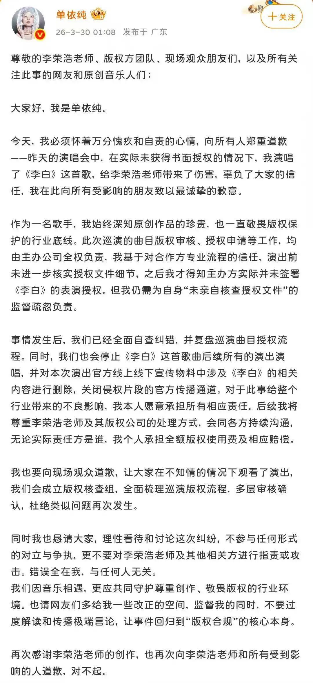 也许是前几天的事情持续的发酵所致,或者是其他事情影响。单依纯的在近期的两场演唱会,一场武汉,一场郑州,都开启了免扣一起费用的退票通道。但是还是继续演唱,还是有一些人去听的。这几天她真的是一直的在道歉。这姑娘也许是还小吧!2001年的,出生在浙江的东阳,今年26岁,知错就改也是一种态度呢!每个人都会犯错,能改是好事,只要不犯同样的错误就好!以前还不熟悉,原来老家就是东阳这边的!