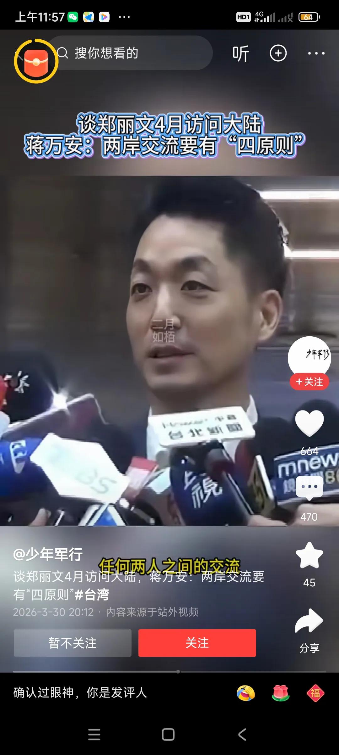 这个蒋方安想法太多了,台湾现状,只是二千万人口的一个小岛,GDP不如大陆一个大城市,他希望两岸要对等,有尊严的交流,,, 今非昔比,现在台湾除了一个台积电算是比较牛的科技公司,其他都一般般,,[捂脸][捂脸] 他要求对等交流,完全是异想天开,大白天做美梦,,,