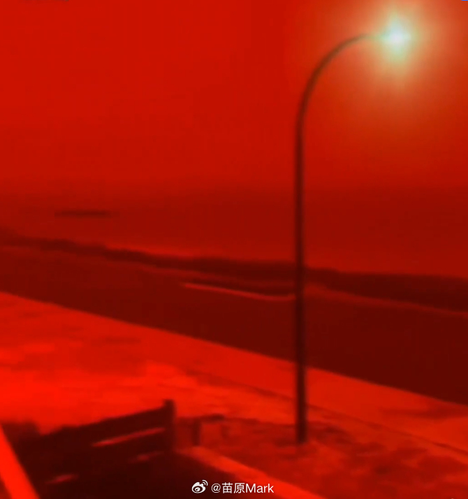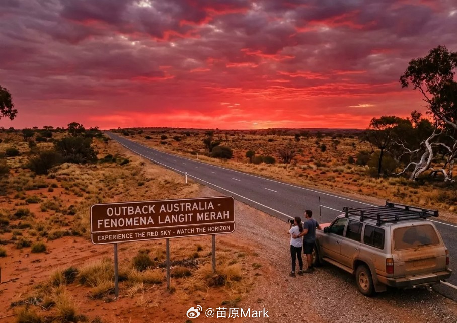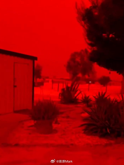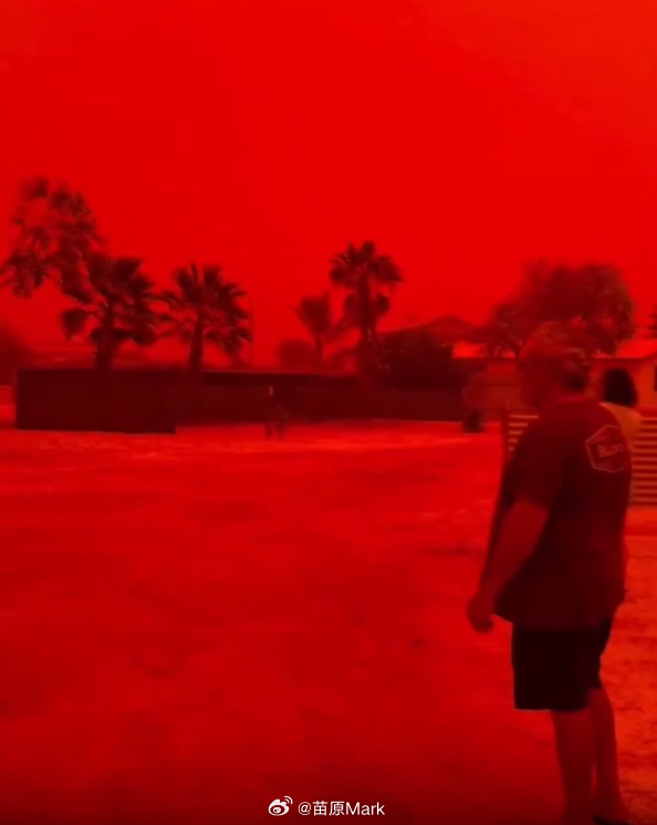 澳大利亚惊现末日红 袋鼠西部红了,铁资源是丰富啊,热带气旋把氧化铁卷到天上,蓝光绿光被吸收,剩下红光和橙光,构成了大型高中光学物理课现场。