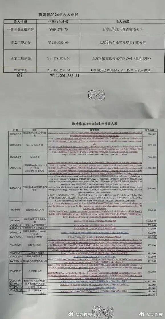 艺人鞠婧祎被实名举报涉嫌偷税漏税,称其瞒报收入比例高达88%,上海市税务局稽查局