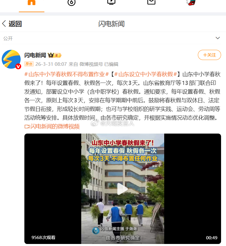 山东中小学春秋假不得布置作业 其实也不用放春秋假,学生放假、如果家长没放假,学生们不是照样在家里歇三天吗?其实不用放假,你让学生在学校里上三天体育课,或者学校组织孩子们去玩就是了哪个家长如果怕孩子磕碰了,可以单独领回家山东设立中小学春秋假,热点观点 ,春假清明连休6天家长称很无奈