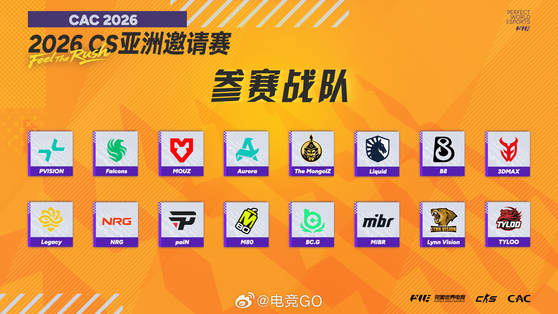 🔥世界级CS赛事CAC2026定档!完美世界电竞将于5月20日-24日在上海举办,总奖金100万美元(战队60万+选手40万)!CAC2026直邀战队官宣 16支豪门战队集结完毕✅ 14支直邀战队含PVISION、Falcons、MOUZ、Aurora等顶尖劲旅,s1mple领衔的BC.G、亚洲最强The MongolZ均在列;中国战队TYLOO、Lynn Vision从预选赛突围,本土出战!CSGO 📅赛事日程:5.20-22小组赛(双败制,Bo1/Bo3),5.23-24淘汰赛(单败制,决赛Bo5)