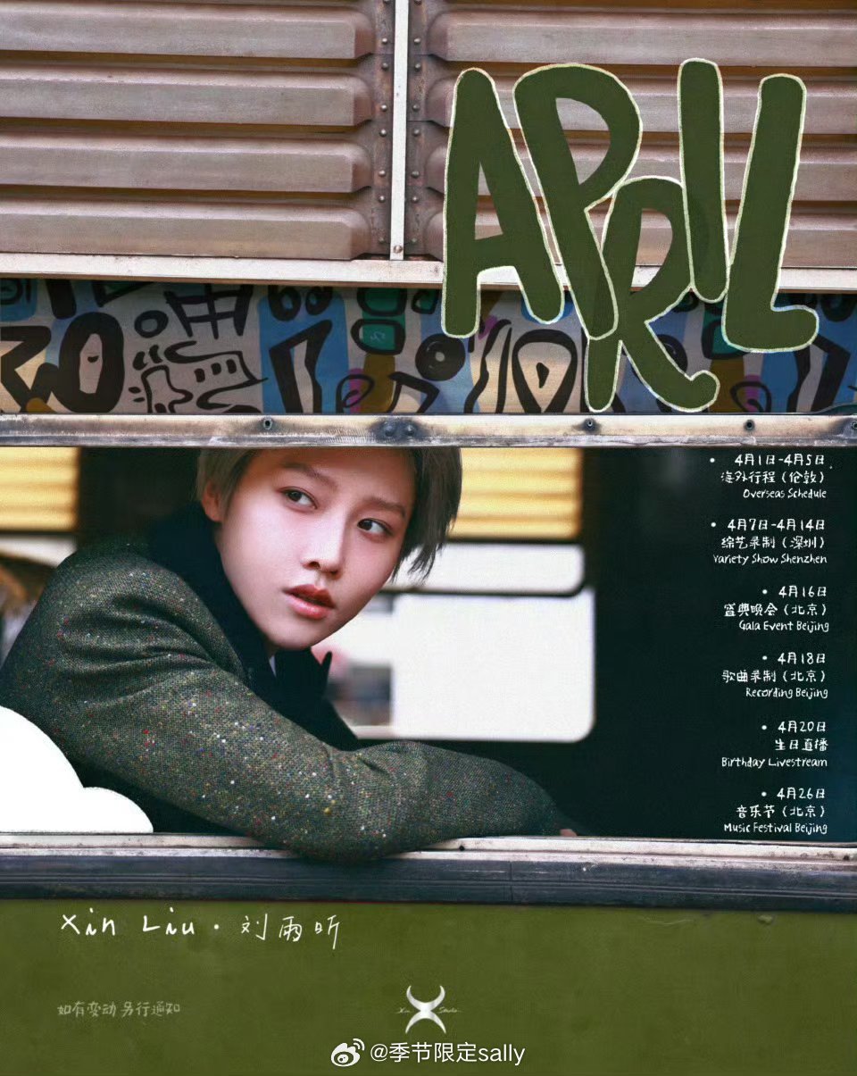 女明星🌸🌸四月行程图🈶白鹿 刘雨昕 卢昱晓 李一桐 陈都灵 宋祖儿 张婧仪