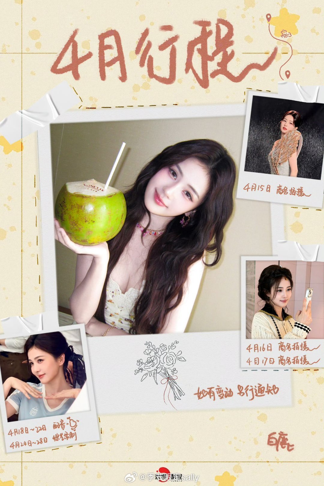 女明星🌸🌸四月行程图🈶白鹿 刘雨昕 卢昱晓 李一桐 陈都灵 宋祖儿 张婧仪 李兰迪 孔雪儿