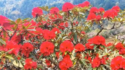 这些天来,在这迷人的早春二月(农历),云南兰坪百草林的高山红杜鹃灿然绽放,花朵硕大如碗,色彩艳丽红似火,一株株、一簇簇、一朵朵,漫山遍野,令无数游人为之倾倒!正如有一首诗写道:莽莽群山一抹红,如霞似锦映苍穹。花神涌起千层浪,游客疑为在梦中。[赞]