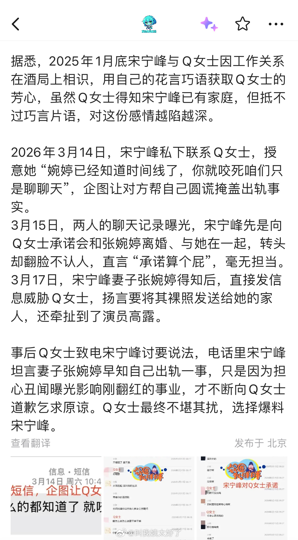 昨天狗仔预告的那个出轨瓜说的是宋宁峰。