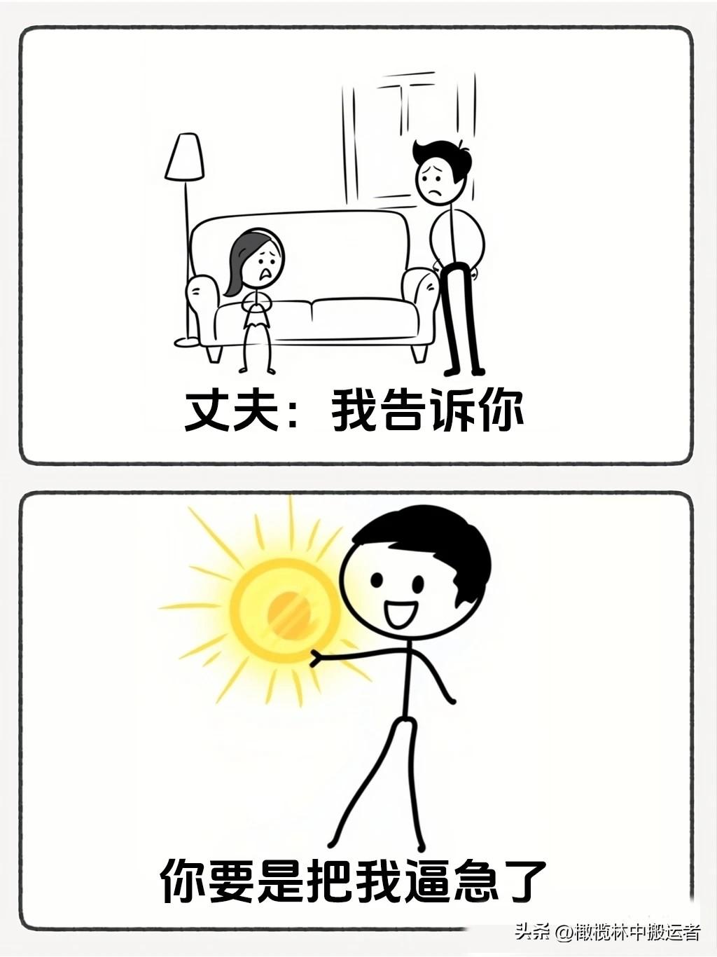 趣味漫画:“夫妻俩吵架,丈夫气话刚撂完,妻子一句话让丈夫乖乖消气🤣笑一笑没烦恼