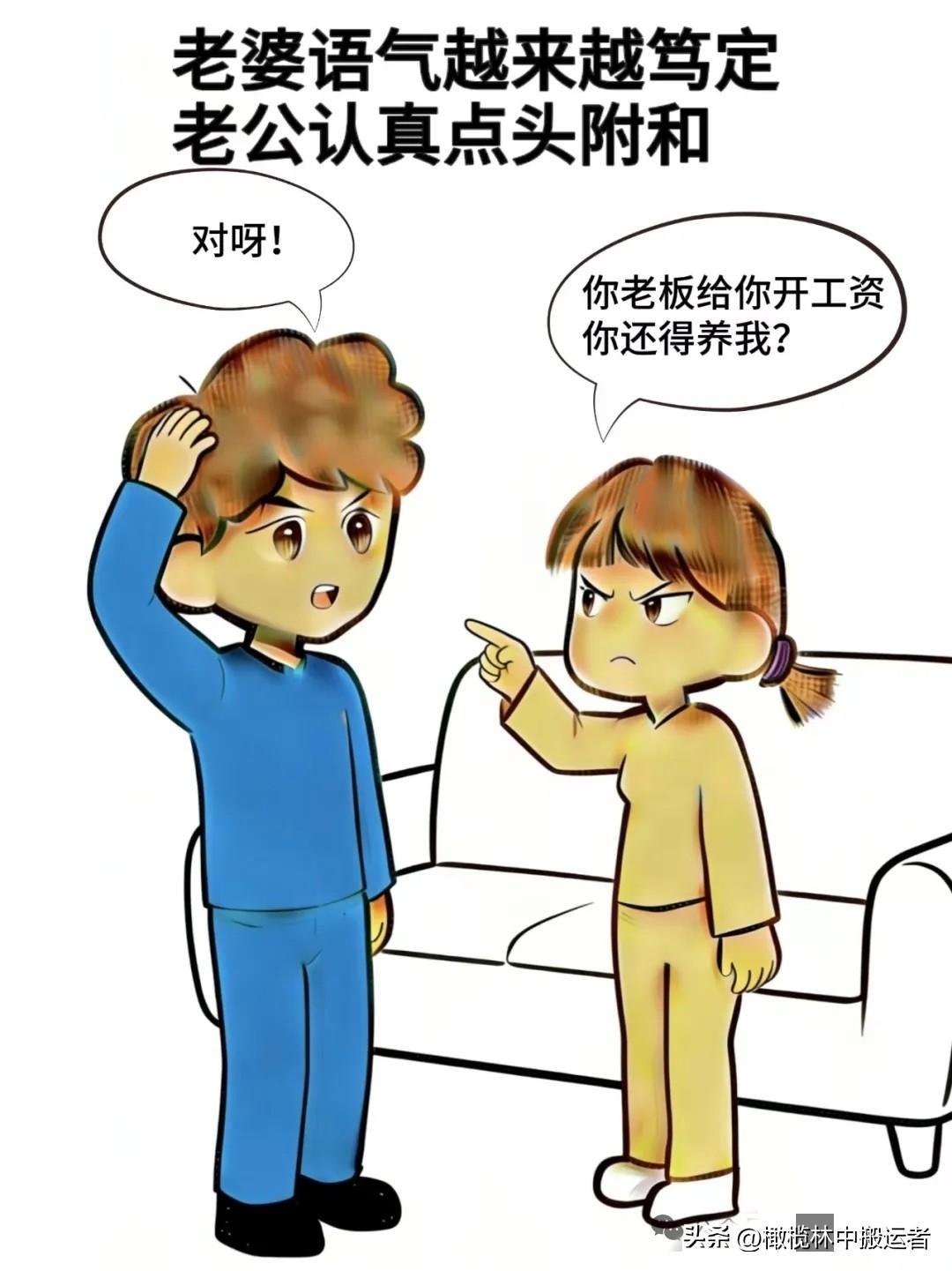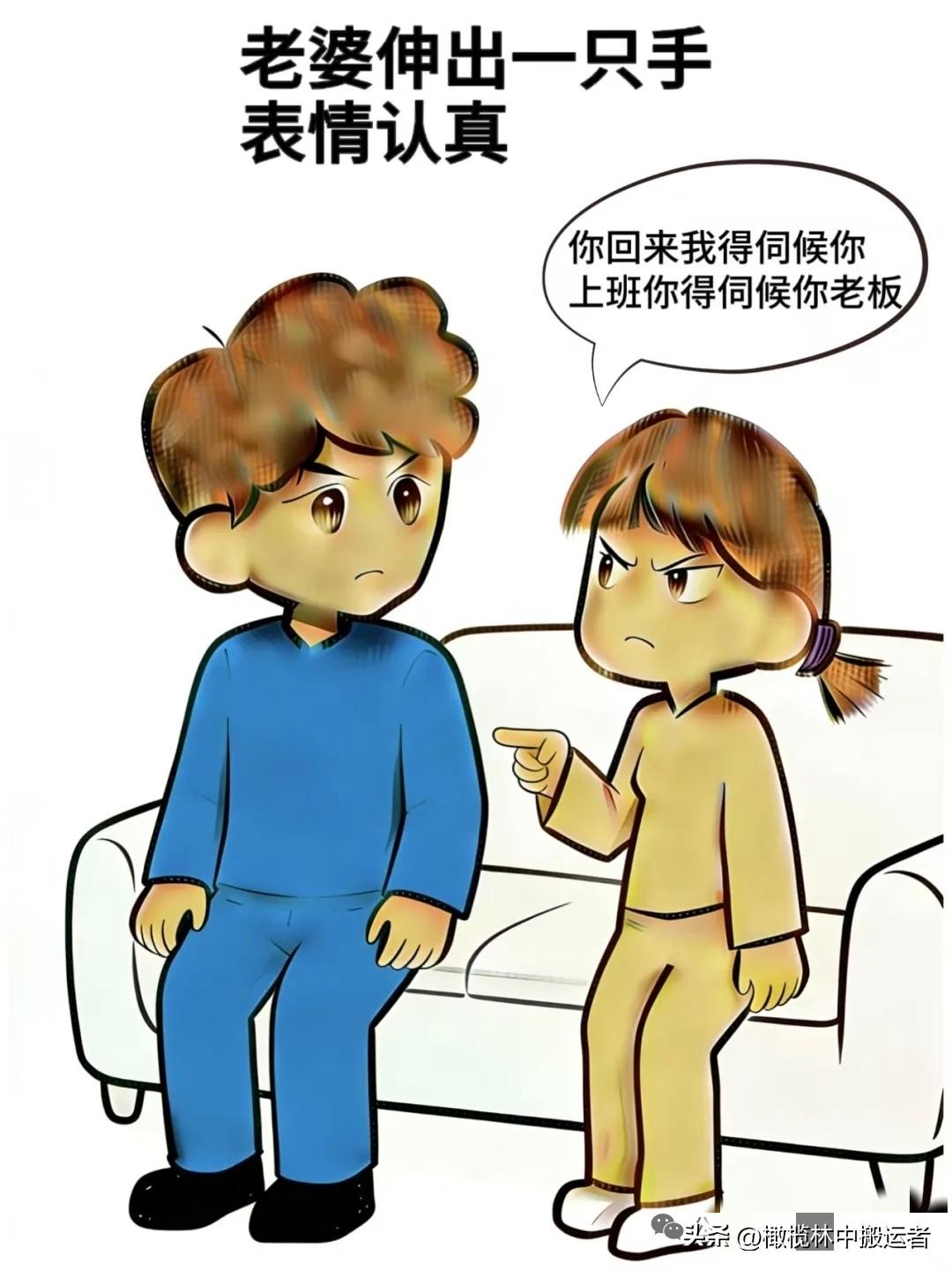 趣味漫画:老婆:你明天不用上班了,老公:为啥?老婆:你回来我得伺候你,上班你伺候老板,老公:对呀,老婆:老板给你开工资,你得养我夫妻日常漫画