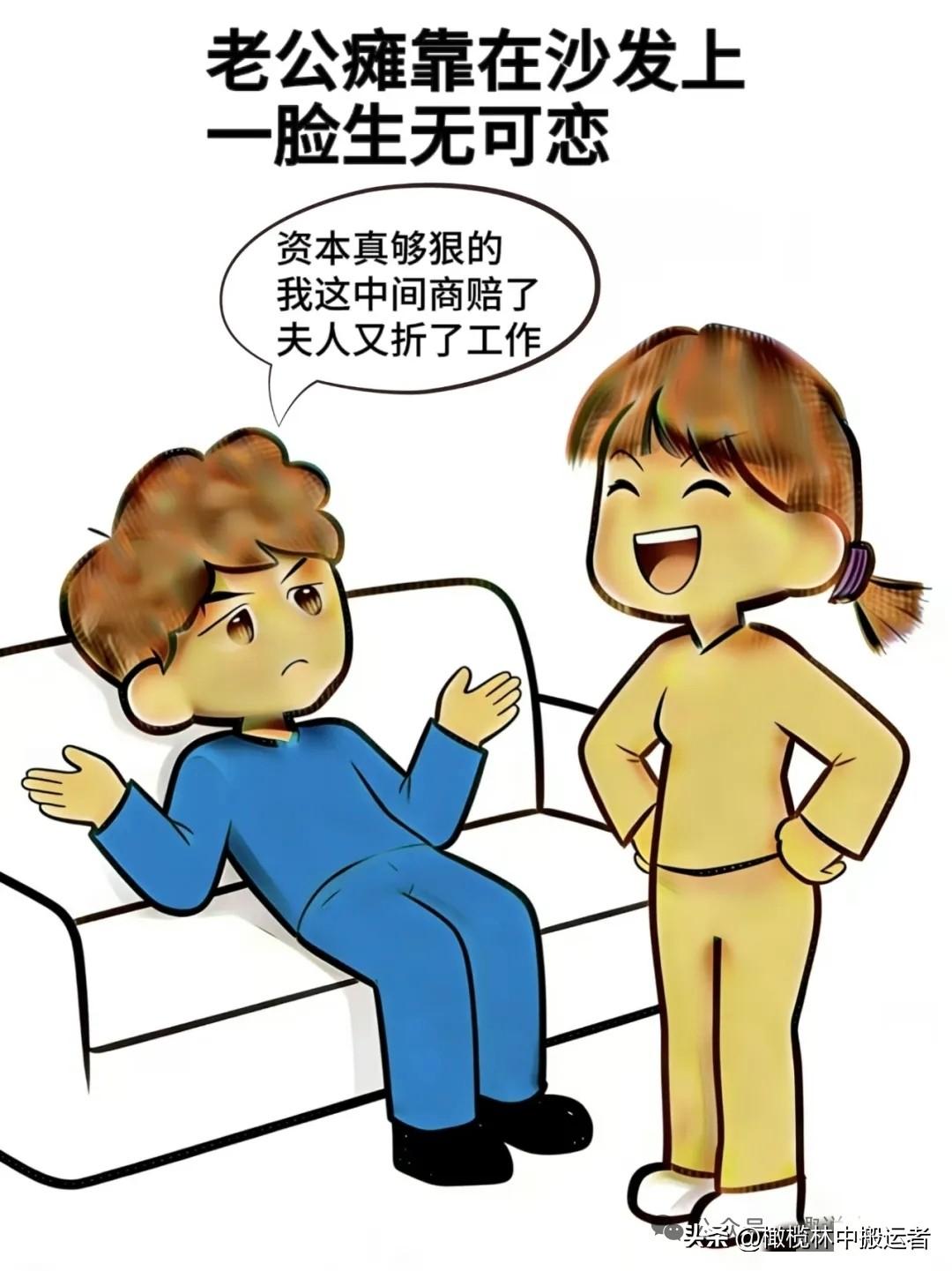 趣味漫画:老婆:你明天不用上班了,老公:为啥?老婆:你回来我得伺候你,上班你伺候