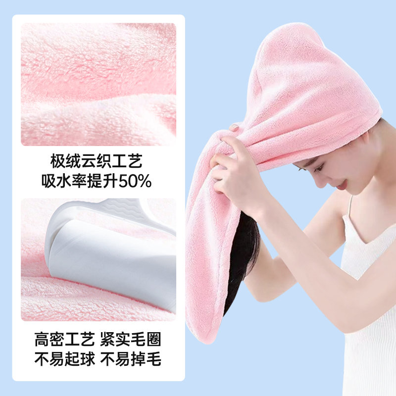 洗头5分钟吹发半小时,相信所有长发男女生都懂有多痛,吹到手酸、流汗、头皮烫,头发依然湿哒哒的,似乎永远都干不透。明明擦了好几遍,发尾还在滴答滴答,想着让它自己干,起码要等一两个小时!,要是等不及直接睡了,隔天起来准头痛。大家可以试试这个GRAREY格瑞亚-第三代极绒纳米干发帽,极绒微米超吸水。采用极绒微米技术,使得织物纤维细、孔隙多,表面立体绒簇紧密排列,大大增强了其吸水性能。密度细长纤维,双面3mm微米纤维,截面8mm厚度,三层立体结构,百万+细微绒团簇,触感细腻柔软蓬松,厚而不闷轻盈透气。真实检测认证,A级别的抗菌抑菌,透气+吸水+抗菌,完全可以放心使用。无荧光剂,无甲醛,无芳香胺,母婴标准,宝宝也放心用。可节头围+防脱扣,25×65cm大尺寸,贴心设计的头围大小,可自由调节长短,帽子上有一个防脱扣,用起来巨方便,洗完头发直接裹住,一戴一扭一扣。不同颜色也有助于一家子区分开来,各用各的,而且固色很牢,水洗也不易掉色呢。选择一条柔软吸水的干发帽,吸走水分让头发自然干,减少用吹风机“烤干”头发的频率。这个好物闭眼入 【GRAREY格瑞亚-第三代极绒微米干发帽】柔软透气极致吸水 A类母婴标准 三条装