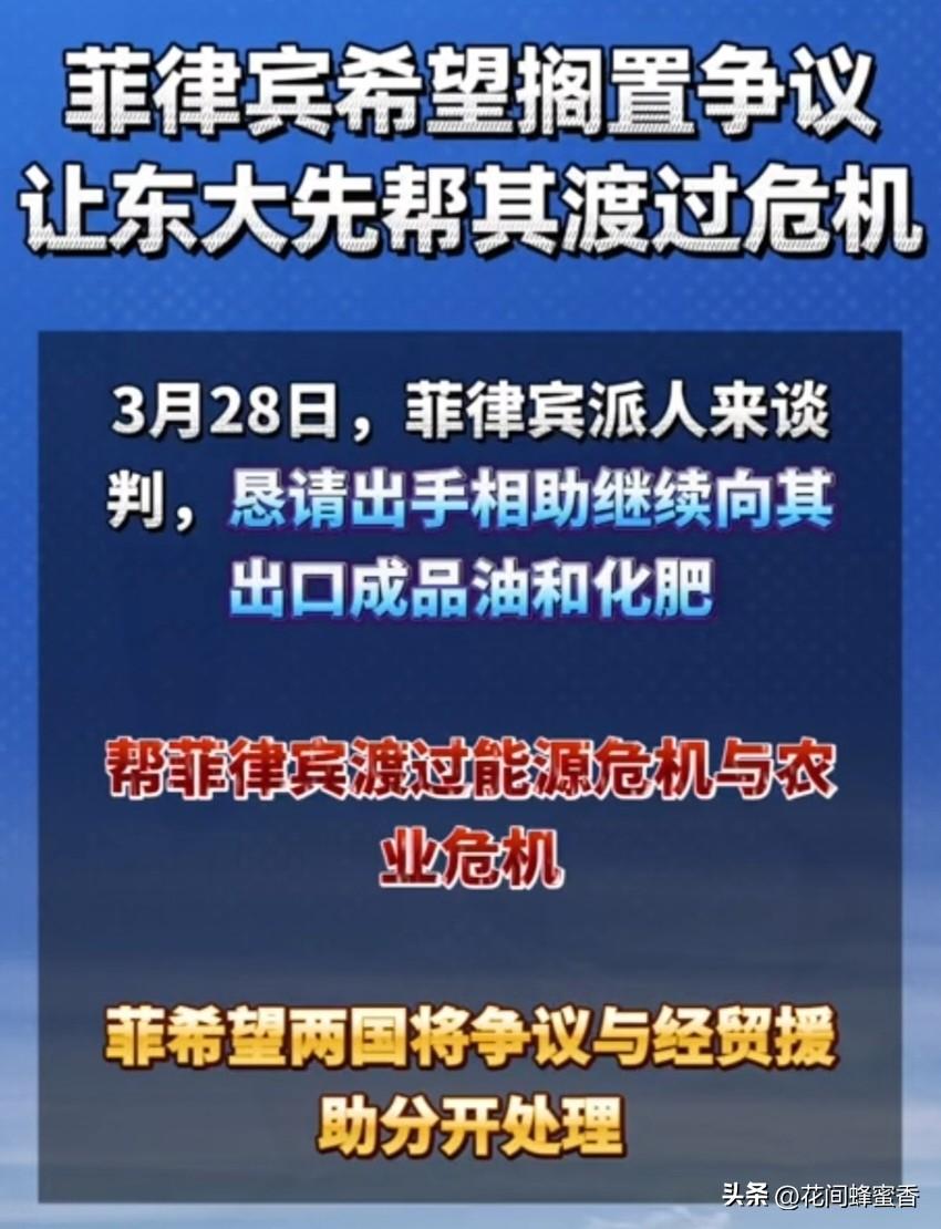 泉州谈判现场! 菲律宾两大诉求曝光, 一边要援助一边谈南海? 中菲南海双边磋商在泉州正式举行,菲律宾当场提出两项关键诉求,引发广泛关注。菲方因国内能源紧张,希望中国加大成品油与化肥供应,缓解当前危机。同时,菲方主张将南海争议与经贸合作分开处理,不愿因海域问题影响双边往来。 国际社会认为,中菲作为近邻,保持沟通符合双方利益,但争议与合作无法完全割裂,相互尊重才是合作基础。 个人认为,菲律宾面临能源困境寻求帮助可以理解,但一边在南海制造分歧,一边希望获得援助,逻辑难以成立。中国在主权问题上立场坚定,不会动摇底线,合作必须建立在相互尊重、平等互利之上。 中菲关系该如何平衡?欢迎在评论区交流看法。菲律宾海局势 菲律宾能源项目