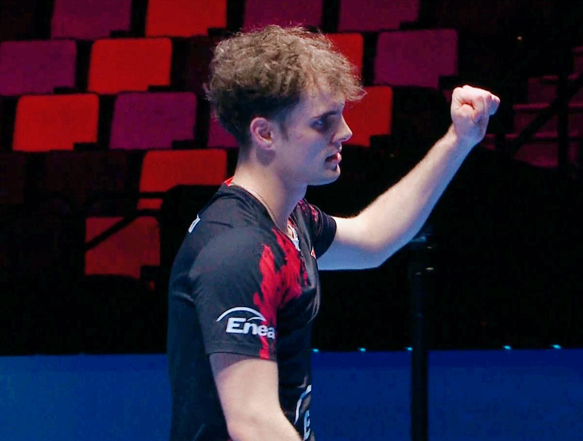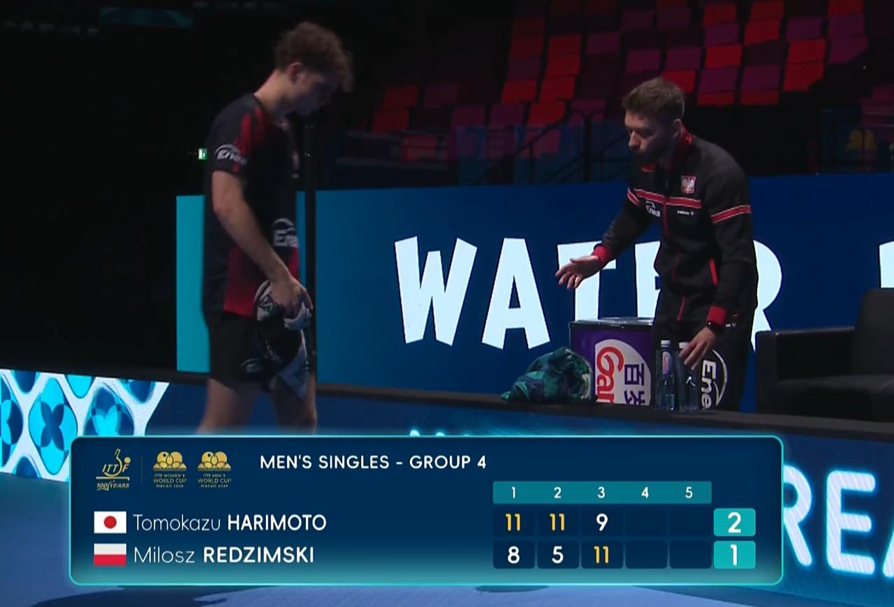笑死我了!张本智和这下玩砸了! 今天对手雷德齐姆斯基回抛42度了, 他也不挑战鹰眼。 裁判看不过去了, 直接判罚雷德齐姆斯基违规, 雷德齐姆斯基不服, 挑战鹰眼, 一看是42度多。 张本智和以往很喜欢挑战鹰眼, 这次为啥不主动挑战鹰眼了? 他觉得对手没有威胁, 拿对手练球了, 想以好的状态进入正赛。 没想到雷德齐姆斯基还挺争气, 11:8逆转了张本智和。 目前大比分张本智和2:1领先, 能否被爆冷? 就看雷德齐姆斯基了。