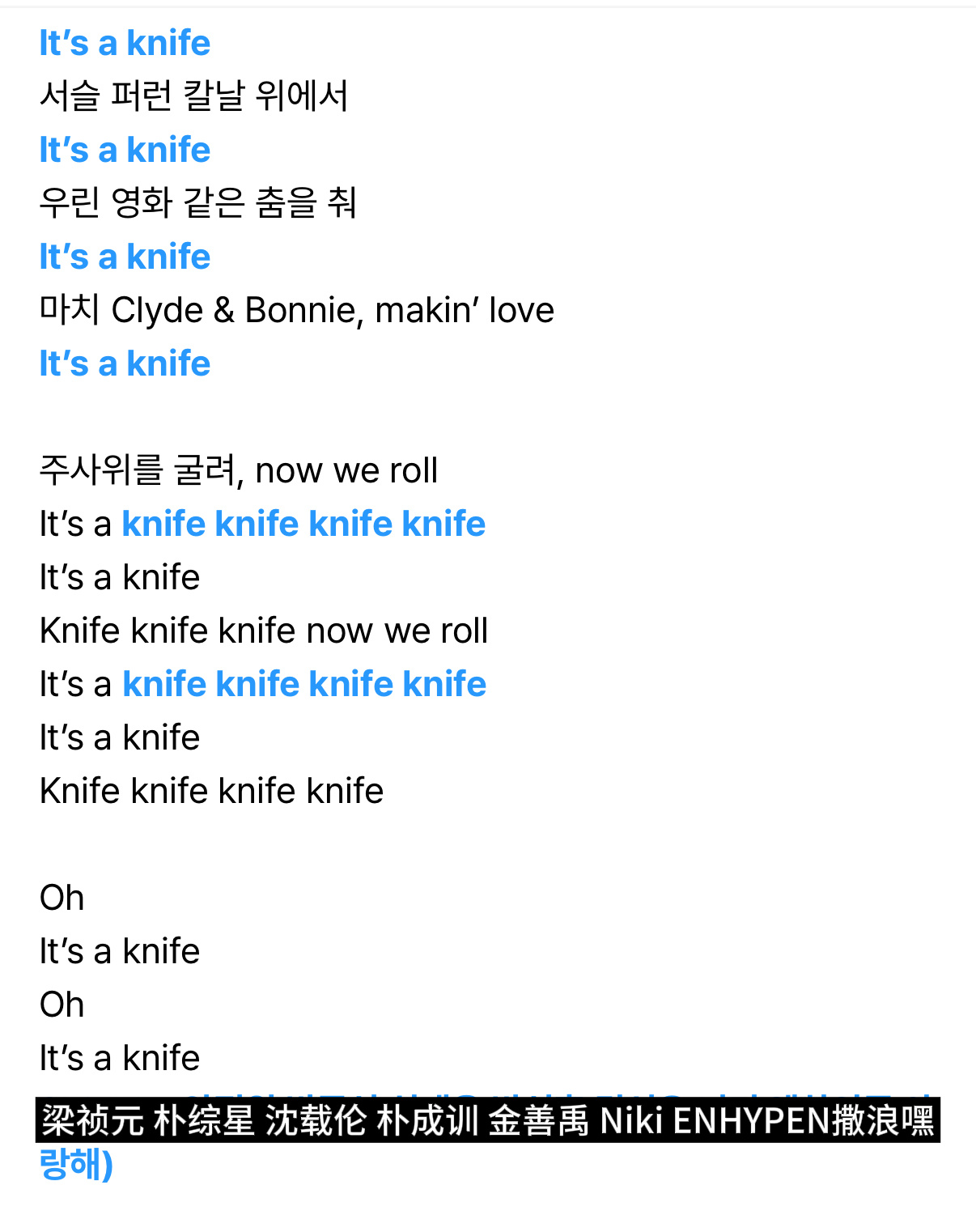 新应援为:梁祯元 朴综星 沈载伦 朴成训 金善禹 Niki ENHYPEN撒浪嘿