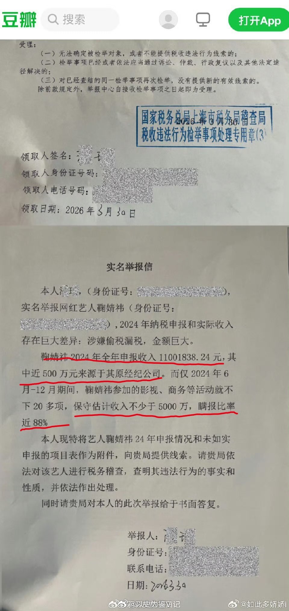 税务部门回应鞠婧祎被举报偷漏税鞠婧祎被实名举报偷税漏税 笑死了,明星粉丝还说要查经纪公司,说明星的收入都是从经纪公司走的,说明公司也有问题……
