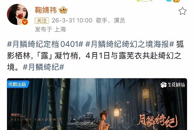 3月31日,鞠婧祎被举报税务问题后,依旧官宣了新剧《月鳞绮纪》明天定档播出!原以为又播不了了,没想到鞠婧祎还是那么刚,你做你的,我做我的,现在还能如此淡定的保持工作节奏,应该是心里有底吧!这件事好像也不需要鞠婧祎本人回应了,看明天月鳞绮纪有没有准时播出就知道了,如果能播,那就证明鞠婧祎有后手,没问题,如果没播,这种定档后不播的动作,大概率是出问题了……