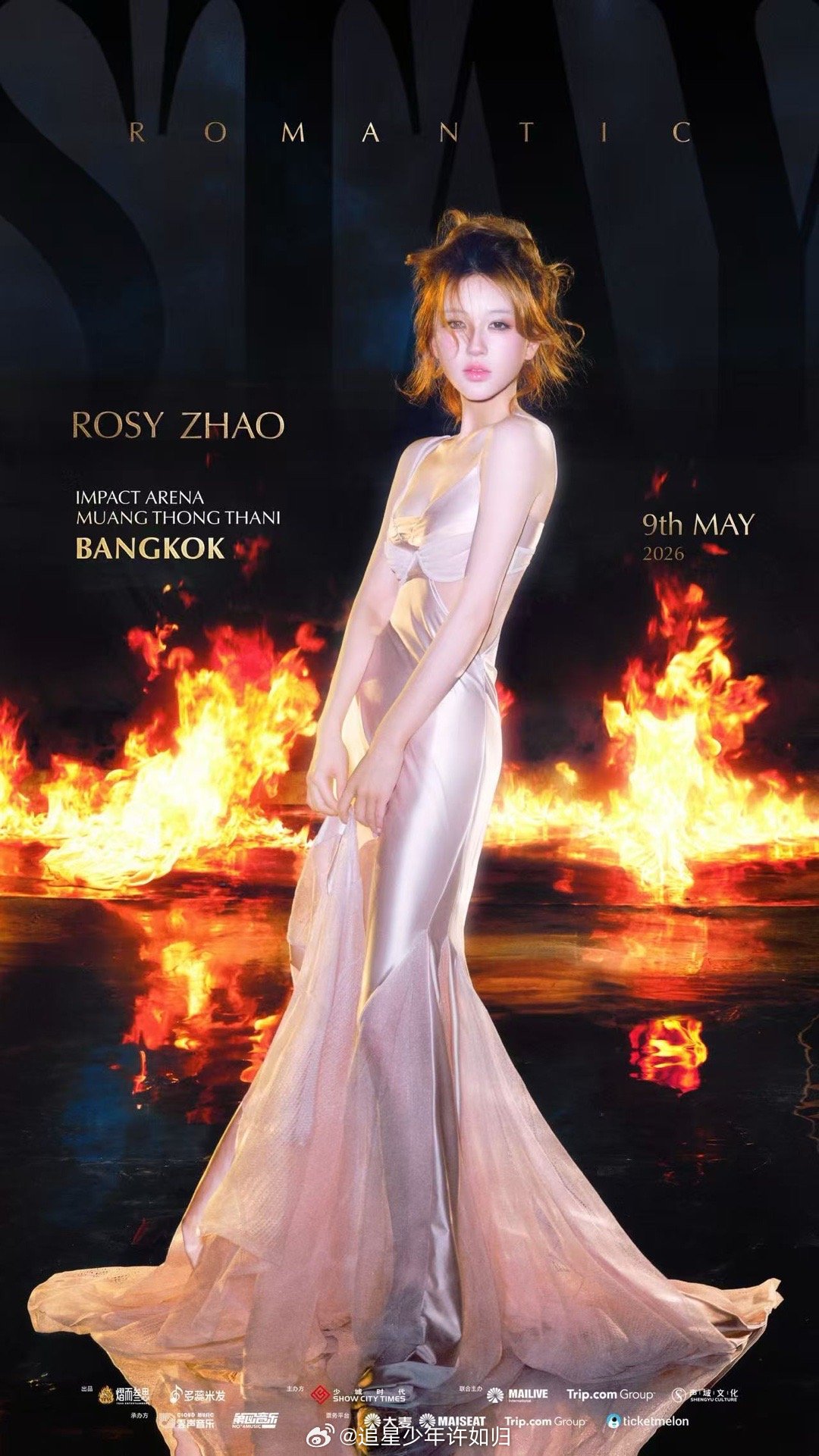 赵露思StayRomantic曼谷演唱会RosyStayRomantic浪漫乐园开园 浪漫乐园终于要和粉丝见面了,海报里的赵露思气场全开,曼谷场必须冲,坐等新歌首唱。