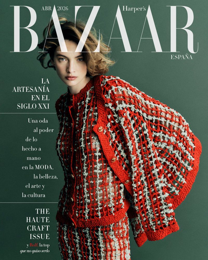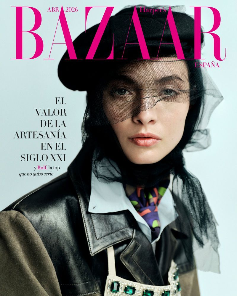 模特Rolf Schrader登上西班牙版《Harper's Bazaar》2026年4月刊封面,带来Chanel、Miu Miu、Issey Miyake的宣传曝光,致敬工艺与创作力|摄影:Javier Biosca/造型:Claudia Laukamp