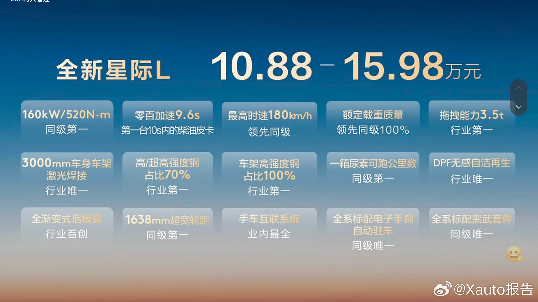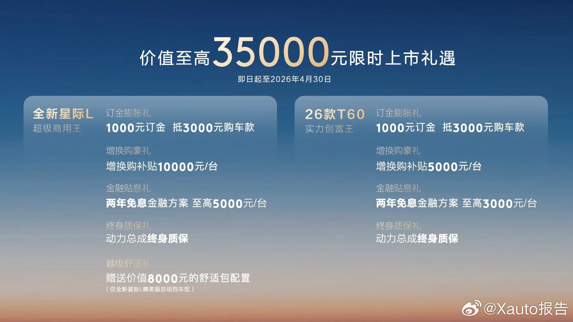 3月30日,上汽大通三款新皮卡于无锡上市,第40万辆皮卡同步下线,并启动公益行动。品牌推出7天试驾与动力终身质保,切实为用户兜底,践行与创富者同行的理念。大通全新星际L上市买车先试开爽7天再下单