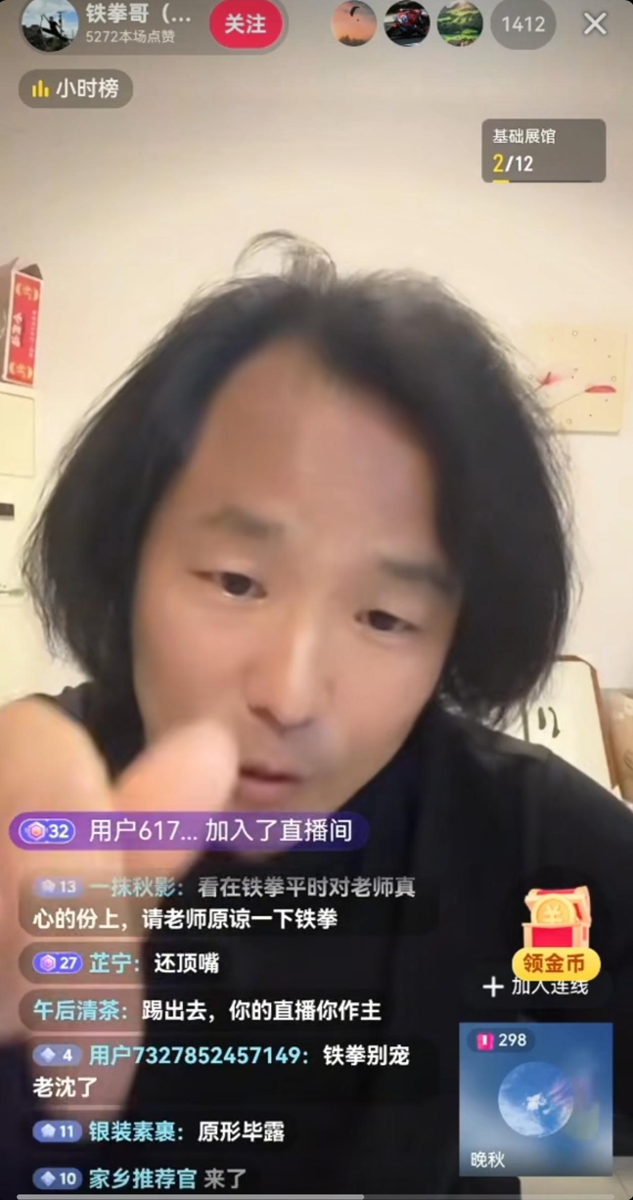 沈巍圈突发变故,沈巍要把铁拳踢出去了,两人在直播间隔空对话,讲了很多一刀两断的话,沈老师全程发脾气,指教铁拳,说之前多么信任他,铁拳似有无限委屈。话语中提到刘辛、文迪、婷二,似乎焦点是关于西安之行的费用问题 ,还有就是说铁拳不该代表老师,铁拳应该是和刘辛闹矛盾了,说要盘他,老师为也刘辛鸣不平,彻底不要铁拳了。铁拳说刘辛不该骂他,文迪也不该说他,他来西安也不是贴着要来的……。看来,缘尽于此了,沈巍圈子的人不断在发生着变化。