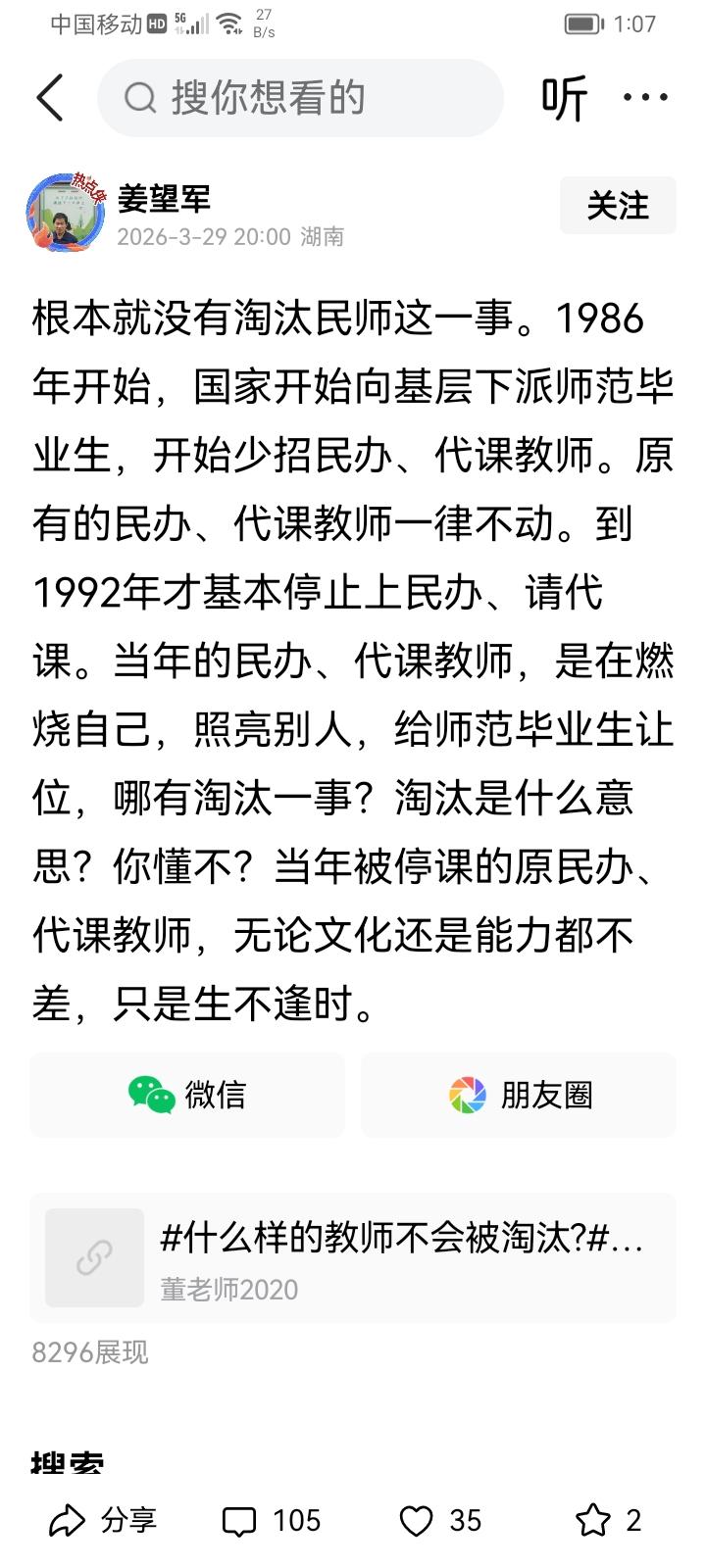按照你的观点,没转正的都是1987年以后当的民办教师,并且七老八十的一干就是二三十年,那截止到2000年他们干20年就应该是从1980年干的,如果是干了30年就是从1970年干的,怎么就没有考转正机会?怎么就没有考师范学校的机会? 你能不能举个七老八十从教30年没有考转正机命“生不逢时”的例子来?