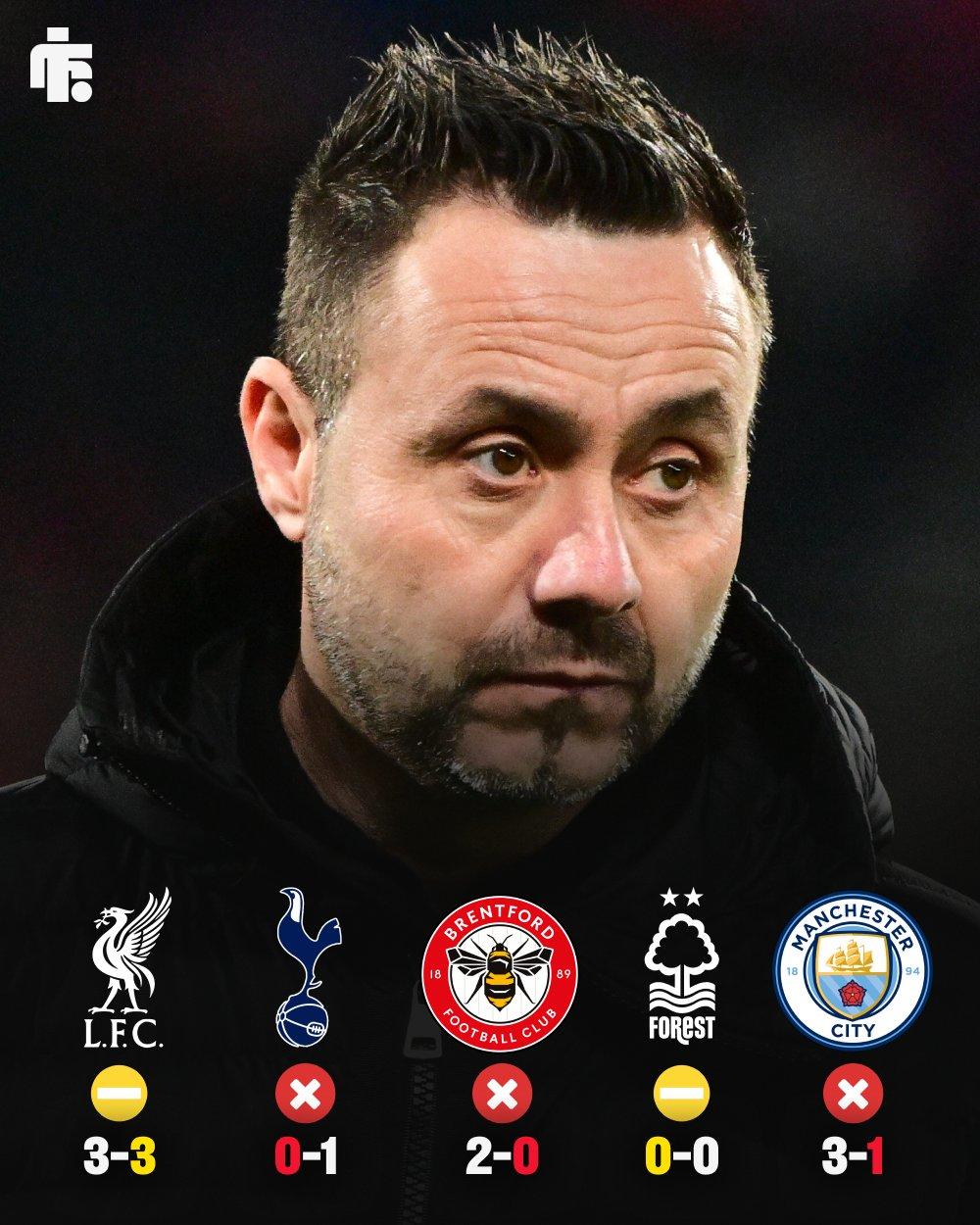 【友情提示】德泽尔比当初接手布莱顿成为球队主帅后,曾经历了漫长的开局低谷。他在执掌海鸥军团的前41天里,始终未能带领球队拿下首场胜利,执教开局堪称艰难。 而如今,德泽尔比与深陷保级泥潭的托特纳姆热刺联系紧密,球队正全力邀请这位意大利教头接手帅位。 值得关注的是,本赛季英超联赛仅剩最后55天便将落幕,热刺目前保级形势岌岌可危,德泽尔比这次必须短时间出成绩。热刺