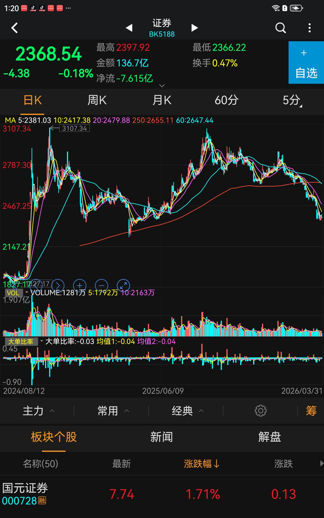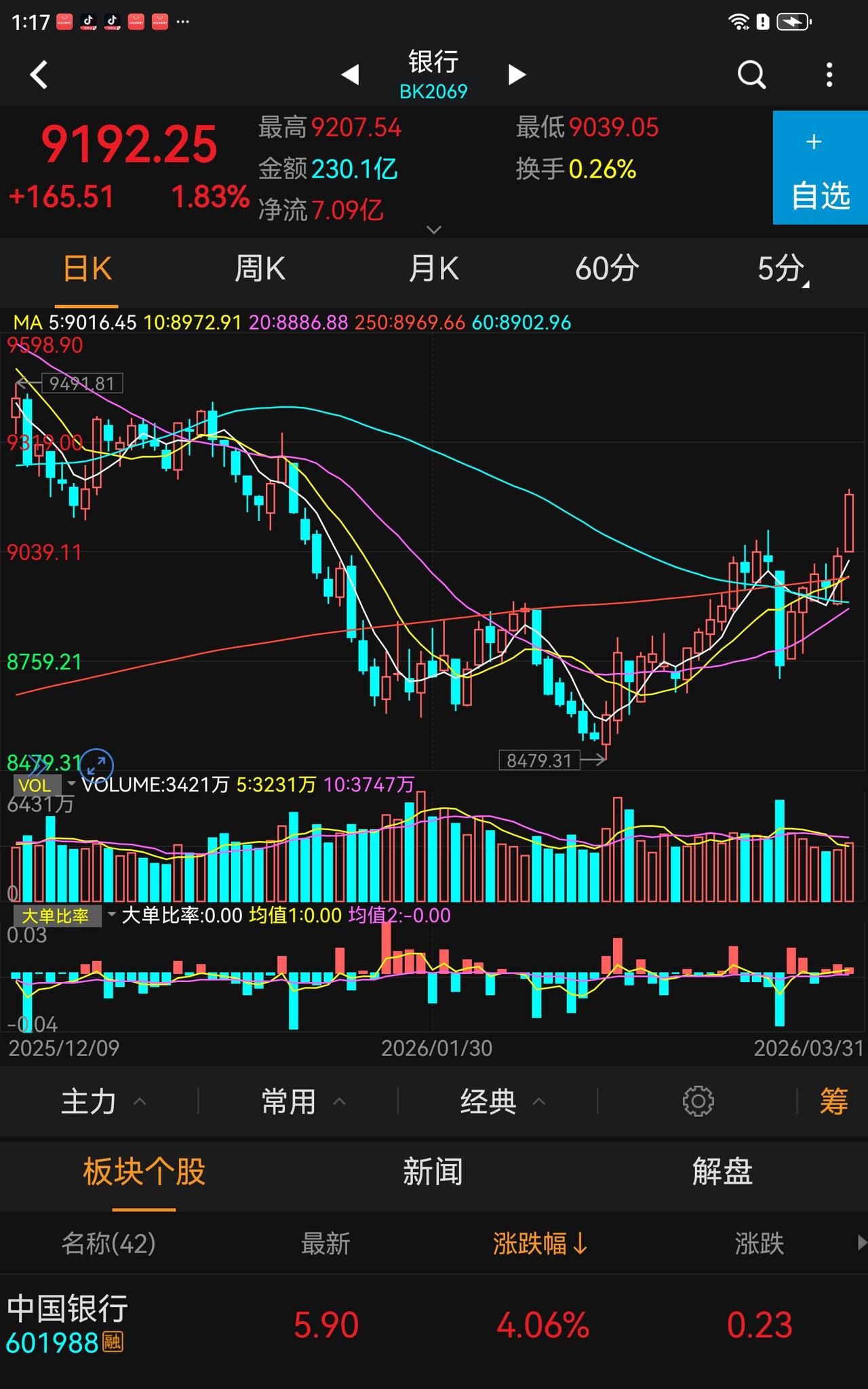 股市的风险已经很小了,很多科技股已经深幅调整了,主升浪的电力也深度补调了,沉舟侧畔柳暗花明,持仓的可以乐观了,你硬是要在调整末期刻割肉那也没有办法。 创业板有点下跌空间,大概率调整到上证调整的位置,指数共振才形成合力。 银行都拉爆了,队长换一个地方券商拉一把行不行? 券商的轿子就那么重吗? 反弹一下也行啊! 一些老登股如海天这种都上年线了,黎明还远吗?