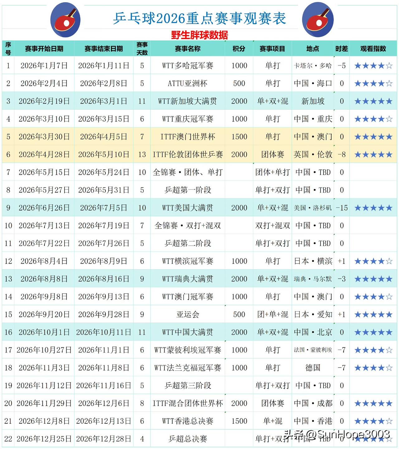 11月份的乒超联赛在贵阳举行 贵阳文旅体商发布的2026年重要活动日历上显示11月份有乒超分站赛, 11月12日,是乒超的第三阶段比赛, 恰好时间也是对的上的, 官方发布的日历,一般也不会有错, 也就是说第三阶段比赛已经确定了在贵阳, 海拔大约1000米, 运动员们也是需要适应一下的。 26年乒超已经是4个阶段,于何一直播的时候说第一阶段在西安, 但是官方未公布。 另外的两个阶段暂时还没有消息。