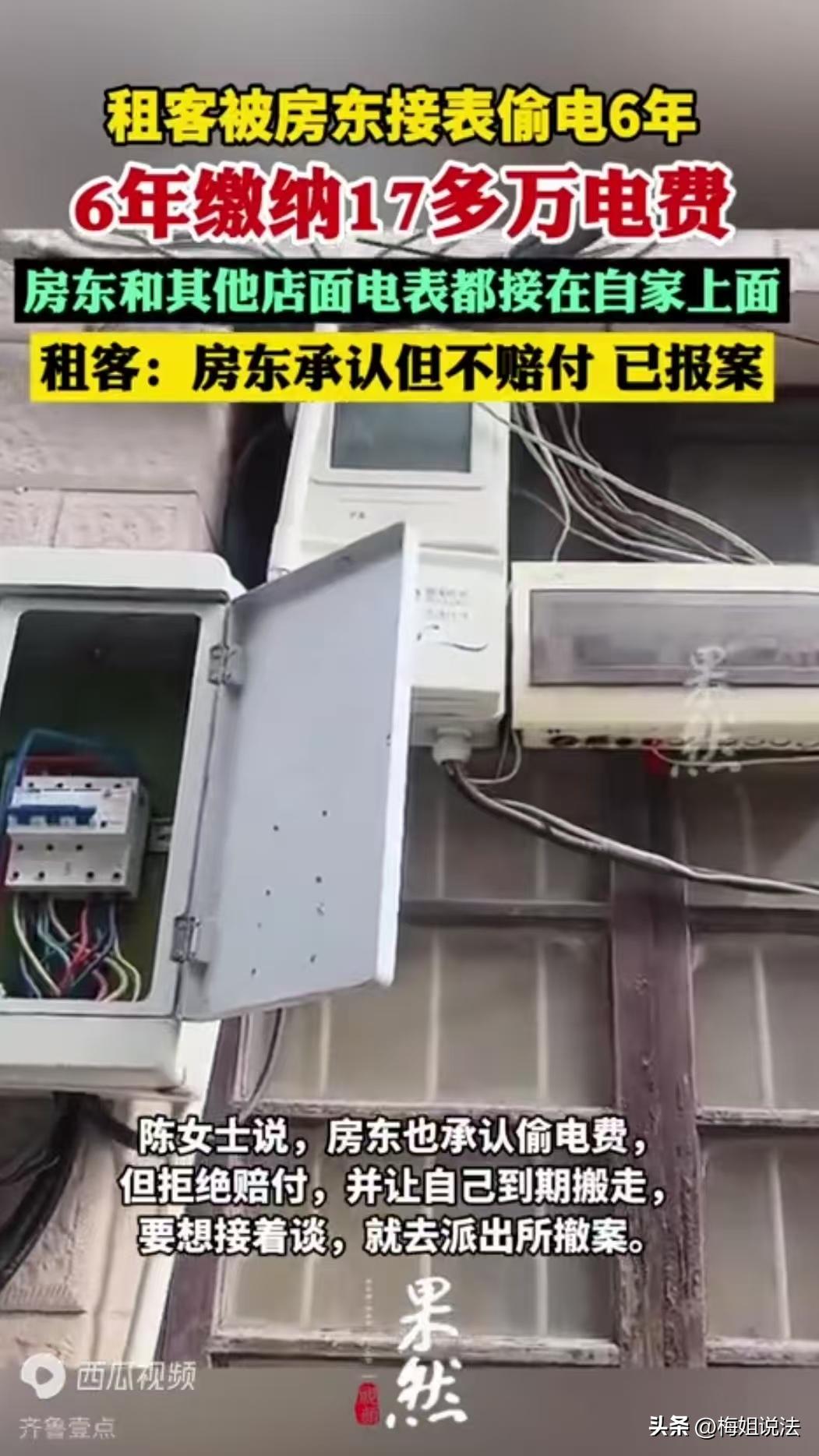 浙江海宁,一男子租了房东房子做小生意,一租就是六年。这六年里,他每次交电费都纳闷,自己小店用电不多,电费却高得离谱。他找电工查、跟房东提,都没得到合理解决。直到最近换了智能电表,他发现用电量和电费单差距大,一查竟是房东把整栋楼其他租客的电都接到了他的电表上!他找房东对峙,房东先抵赖后耍赖,还让他撤案才谈赔偿。这事传到网上,网友都怒了,纷纷喊不能撤案。 租房做生意的人都懂,房租、水电都是固定成本,一分钱都得算着花。 男子就是做小本生意的,开个小店卖些日用百货,赚的都是辛苦钱,当初租这房子,就是看中地段还行、房租也不算贵,谁能想到,这一租六年,竟被房东坑得这么惨。 他的小店就一个收银机、两台风扇,冬天偶尔开个小暖风机,夏天开空调也很省。 按说每月电费撑死也就几百块,可实际每个月的电费都要上千。 刚开始第一年,他没太在意,以为是自己没算明白,或者电价涨了。 可连着几个月都是这样,他还特意问了隔壁同规模的小店,人家每月电费也就五百多,最多六百。 差距这么大,换谁都会起疑心。 身边朋友都说,会不会是线路漏电? 他听了朋友的话,找了专业电工来查,电工把店里线路都查了一遍,没漏电、没短路,一切正常。 电工还说,就他这用电设备,绝对用不了这么多电,他心里更慌了,直接去找房东,房东是个五十多岁的大叔,平时看着挺和善,可一提到电费就开始打哈哈。 房东说可能是电表不准,也可能是夏天用电高峰,还说大家都是熟人,别太计较。 他不死心,又找了房东几次,可每次房东都敷衍了事,要么避而不见。 他也没辙,生意还要做,总不能因为电费闹僵,就这样一拖就是六年。 这六年里,有时候生意不好,电费都快交不起了,他甚至怀疑自己的生意模式有问题。 直到最近,小区统一更换智能电表,这才揭开了背后的猫腻,智能电表装好后,他每天都看一眼用电量,店里正常营业,一天也就十几度电。 可到了交电费的时候,单子上还是上千块。 这次他没有再忍,直接联系了供电公司,让工作人员来核查,工作人员一查,当场就告诉他问题所在。 他的电表线路被人动了手脚,整栋楼其他租客的电线,都偷偷接在了他的电表上。 也就是说,这六年,他不仅交了自己的电费,还替整栋楼的其他租客承担了所有电费。 他当时就懵了,六年,按每月多交五百算,也得三万多,这都是他起早贪黑、一分一分赚来的辛苦钱。 他拿着供电公司的核查报告,再次找到房东,房东才松了口。 房东说给两千的补偿,要是不接受,以后就别租这房子了。 两千块,连他半年多交的电费都不够,他报了警,还准备起诉房东。 没想到房东更嚣张了,主动联系他说要谈赔偿可以,前提是必须先去派出所撤案,撤了案再慢慢商量补偿的事。 这事被他发到网上后,网友们看完都怒了。 有人说这房东也太黑心了,就是想欺负老实人,不过,也有人劝他,千万别撤案,一定要追究到底。 房东偷偷把其他租客用的电,接到男子的电表上,这种行为违法吗? 据民法典第656条,供用电合同的履行地点,按照当事人约定;当事人没有约定或者约定不明确的,供电设施的产权分界处为履行地点。 也就是说,男子租的小店,电表以内的用电归他承担,电表以外的,或者不是他使用的电,他完全不用担责。 房东私自接线,相当于让男子承担了不属于自己的费用,侵犯了他的财产权。 男子能要求房东退还这六年多交的电费吗? 民法典第一千一百六十五条规定,行为人因过错侵害他人民事权益造成损害的,应当承担侵权责任。 房东故意动线路,让男子替别人交电费,主观上有过错,客观上造成了男子的财产损失,两者之间有因果关系,房东必须退还多收的电费,还要赔偿相应的损失。 电力法第71条规定,盗窃电能的,由电力管理部门责令停止违法行为,追缴电费并处应交电费五倍以下的罚款;构成犯罪的,依法追究刑事责任。 房东私自接线,本质上就是盗窃电能,要是涉案金额较大,还可能构成盗窃罪,这可不是简单的民事纠纷,不能轻易撤案。 男子要是起诉房东,需要准备好最关键的供电公司的核查报告,这能证明线路被改动、男子多交了电费。 还有六年以来的电费缴费凭证、和房东的聊天记录、通话录音,证明他多次向房东反映电费问题,房东敷衍了事。 另外,电工的证言、隔壁小店的电费凭证,也能辅助证明他的用电量不合理。 房东故意私接线路,让男子替整栋楼交了六年电费,事后还耍赖逼着男子撤案,本质上是侵权甚至涉嫌盗窃电能的违法行为。 男子作为受害者,有权要求房东退还全部多交的电费、赔偿损失,更不应该轻易撤案,一定要通过法律途径维护自己的合法权益。 目前这事还在处理中,按照法律规定,男子胜诉的概率极大,房东不仅要退钱,还可能面临电力部门的罚款,要是涉案金额达标,还会被追究刑事责任。 租房时,你会仔细核对水电费单据吗?遇到这种被房东坑的情况,你会选择忍气吞声还是坚决维权?