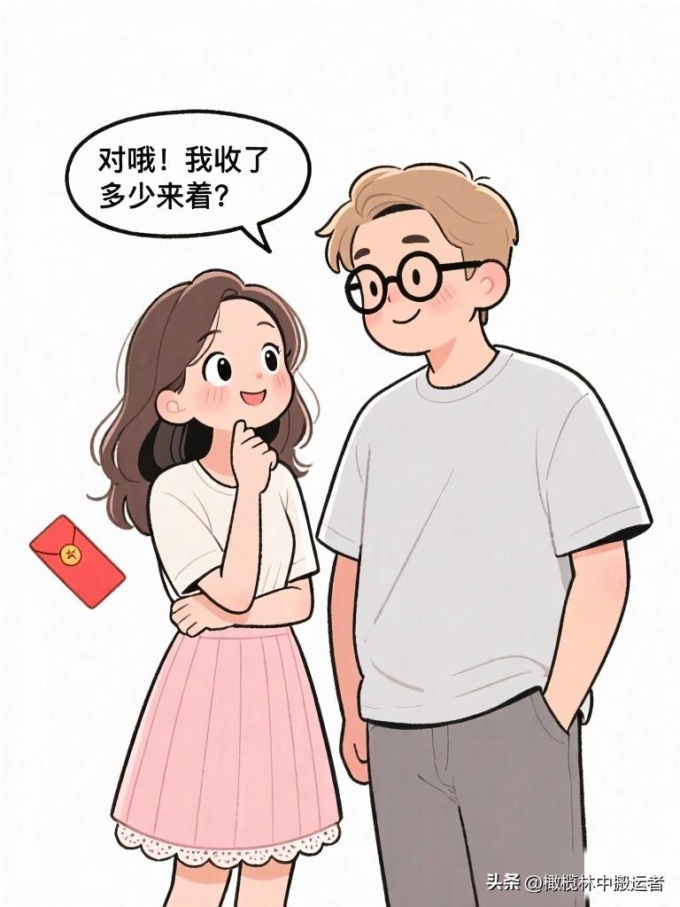 搞笑漫画:老婆翻手机算了半天,愁眉苦脸地说:“过年光发红包就花了八千多……” 老公安慰她:“没事,咱不也收了红包吗?”搞笑漫画大赏