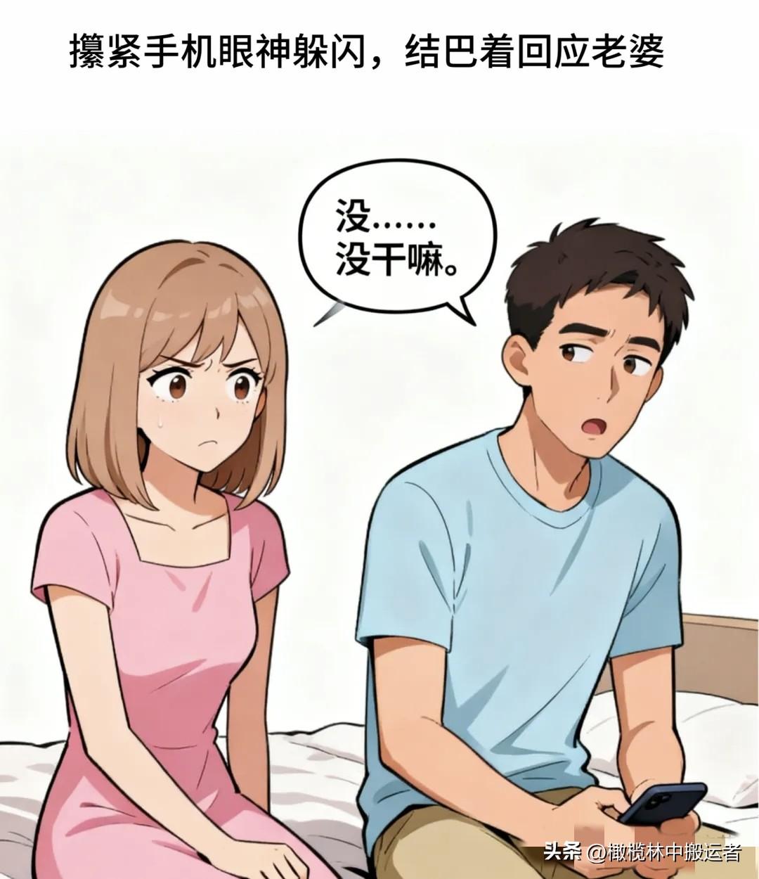 趣味漫画:老婆双手叉腰凑过来:干嘛呢?我攥紧手机眼神躲闪结巴:没……没干嘛。隔壁