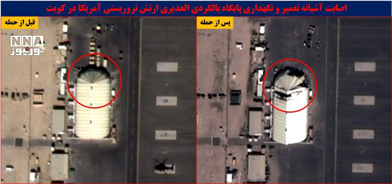 🔻伊朗媒体法尔斯、NNA公布的卫星图像显示,伊朗袭击后美军科威特布林军营几乎所有区域都遭受了广泛破坏。🔹位于北纬 29°42'12.59"、东经 47°25'54.77"的一处大型机库(可能用于停放直升机或无人机)被击中。🔹位于北纬 29°42'05.31"、东经 47°25'45.64"以及北纬 29°42'10.51"、东经 47°25'25.82"的多处部队营房遭到打击。🔹该军营位于北纬 29°41'51.35"、东经 47°25'26.64"的健身房受损严重。🔹位于北纬 29°41'49.10"、东经 47°25'32.15"和北纬 29°41'54.31"、东经 47°25'32.20"的两座仓库或机库严重受损。🔹位于北纬 29°41'24.46"、东经 47°25'04.70"和北纬 29°41'26.66"、东经 47°25'07.29"的两座美军后勤部大型区域维修棚遭到严重损毁。🔹另一次袭击彻底摧毁了位于北纬 29°41'46.48"、东经 47°25'22.00"的附属教堂设施。🔹位于北纬 29°41'52.39"、东经 47°25'50.08"的主要消防部门附近的一座仓库也遭受了直接打击。🔹营地北部区域北纬 29°42'11.32"、东经 47°25'41.38"处的一座后勤部大型区域维修棚遭受重创。🔹位于北纬 29°41'21.63"、东经 47°25'36.11"的布林营发电厂遭受严重破坏。🔹位于北纬 29°41'37.22"、东经 47°25'44.45"的公共工程部自助服务中心也遭到严重损毁。🔹位于北纬 29°41'37.58"、东经 47°25'27.08"和北纬 29°41'36.89"、东经 47°25'26.08"的部队营房被摧毁。🔹位于北纬 29°41'40.96"、东经 47°25'31.66"的一处大型避难所被完全摧毁。🔹位于北纬 29°41'57.62"、东经 47°25'49.91"的科威特美国陆军布林营地总部主楼在伊朗袭击中被完全摧毁。伊朗最大岛屿遭美以袭击伊朗导弹高速突破以色列拦截海外新鲜事中东现场直击