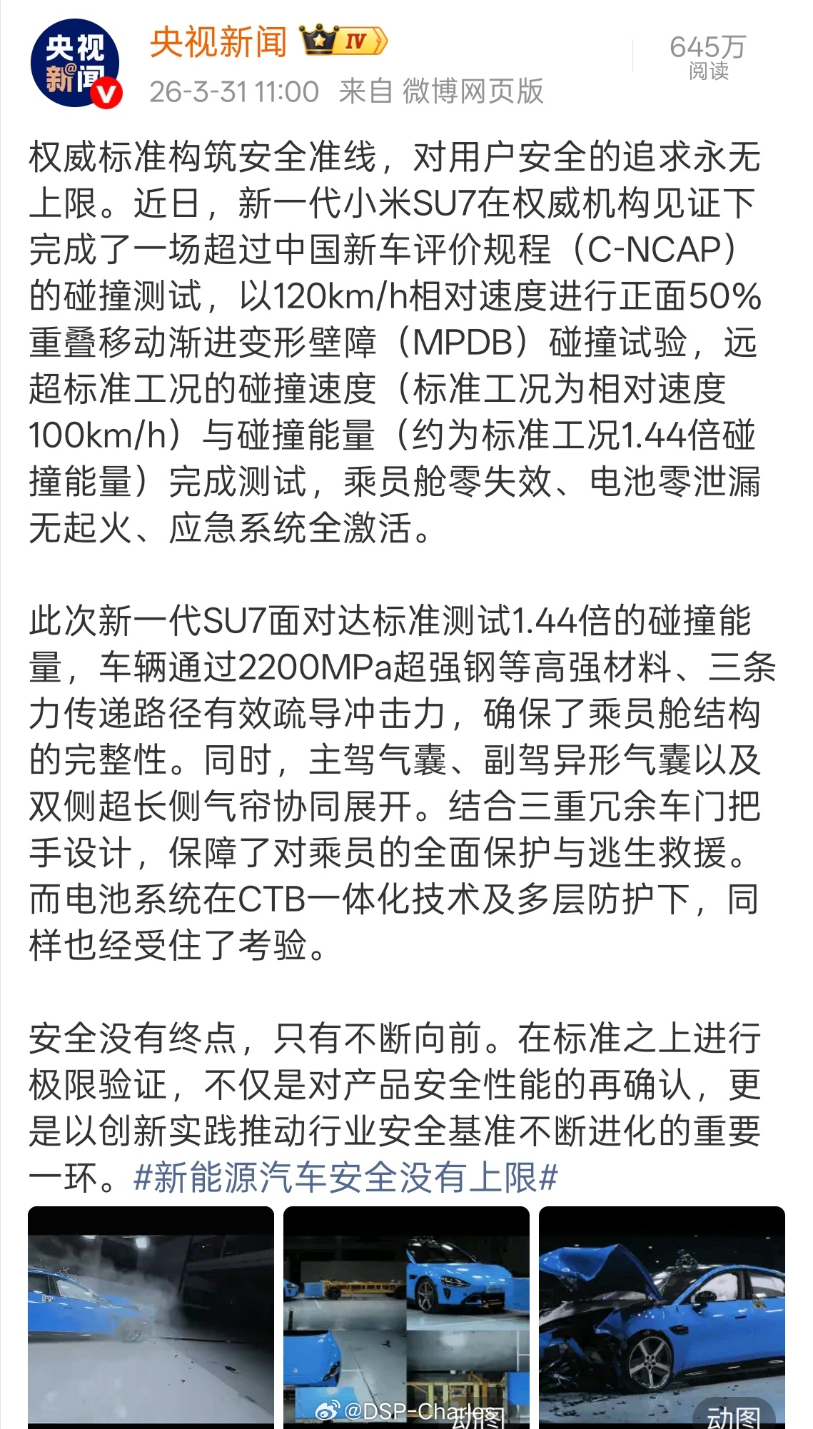 没有任何主动安全能完全避免发生事故,被动安全就是给乘员舱的兜底,看得见的每一点用料,才是真正的安全。