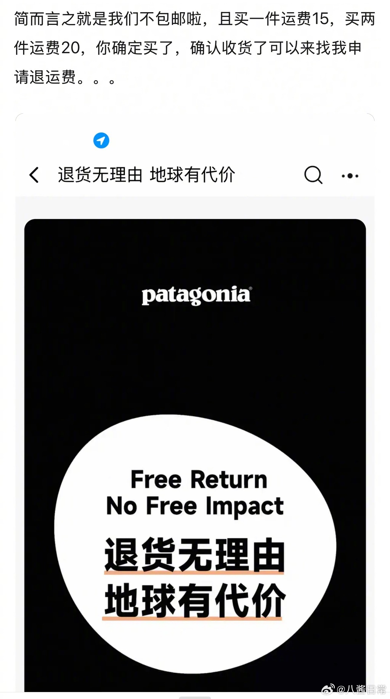 Patagonia天猫店将管消费者要“地球使用费”
