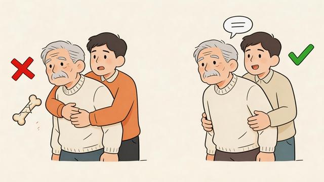那么,以后还能不能抱了?专家表示,当遇到确实需要从身后抱提的情况,需要注意以下两点:一是风险评估,对于中老年人群及已知有骨质疏松情况的人群,绝对避免突然的抱提动作;二是动作要领,如果确有必要(如协助起身),应遵循“缓慢、平稳、轴向支撑”的原则,先与对方沟通,让其有所准备,然后双手应从对方腋下或腰部提供支撑,避免直接挤压胸廓,向上用力时保持匀速,避免突然发力或扭转。