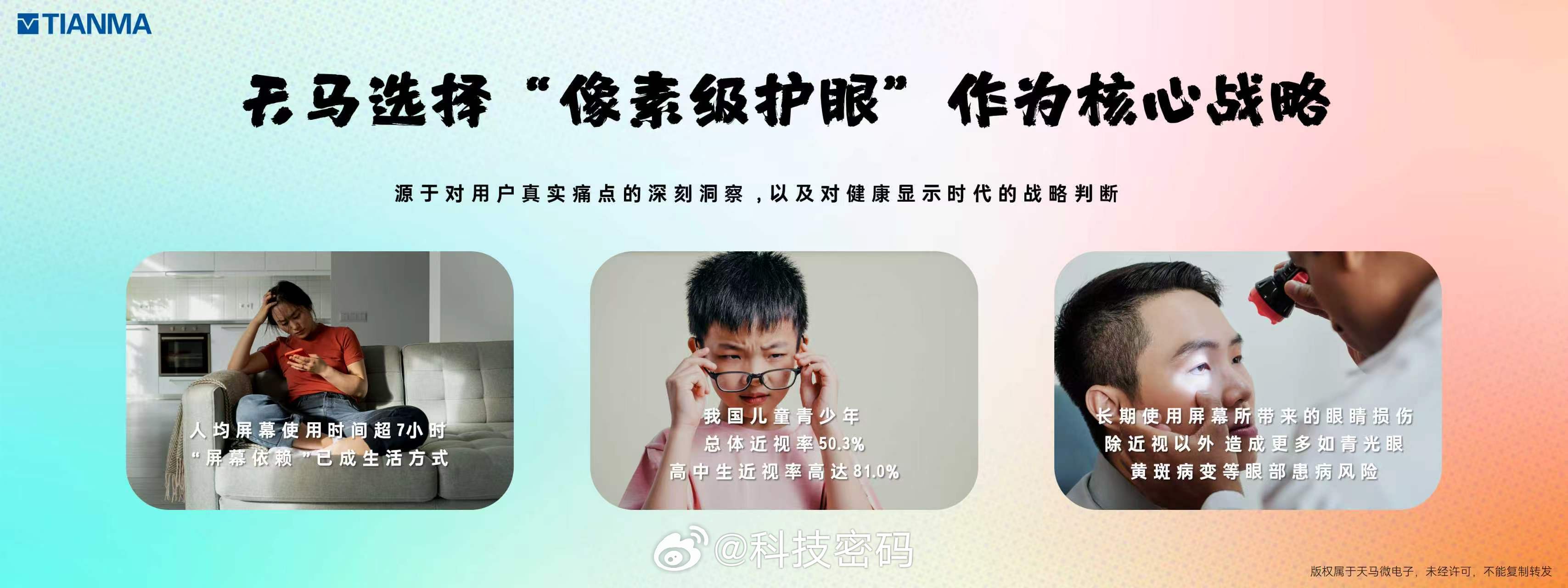 天马于2025年9月发布高端OLED技术品牌“天工屏”,以护眼、通透、高刷树立显示新标杆。今年,天工屏全新升级,从像素单元出发,推出“像素级护眼”战略,让体验从看得“清”迈向看得“舒服”、看得“健康”。天马天工屏天工屏升级像素级护眼新一代U9Pro护眼基材央视认证五星好屏天马点亮生活之美