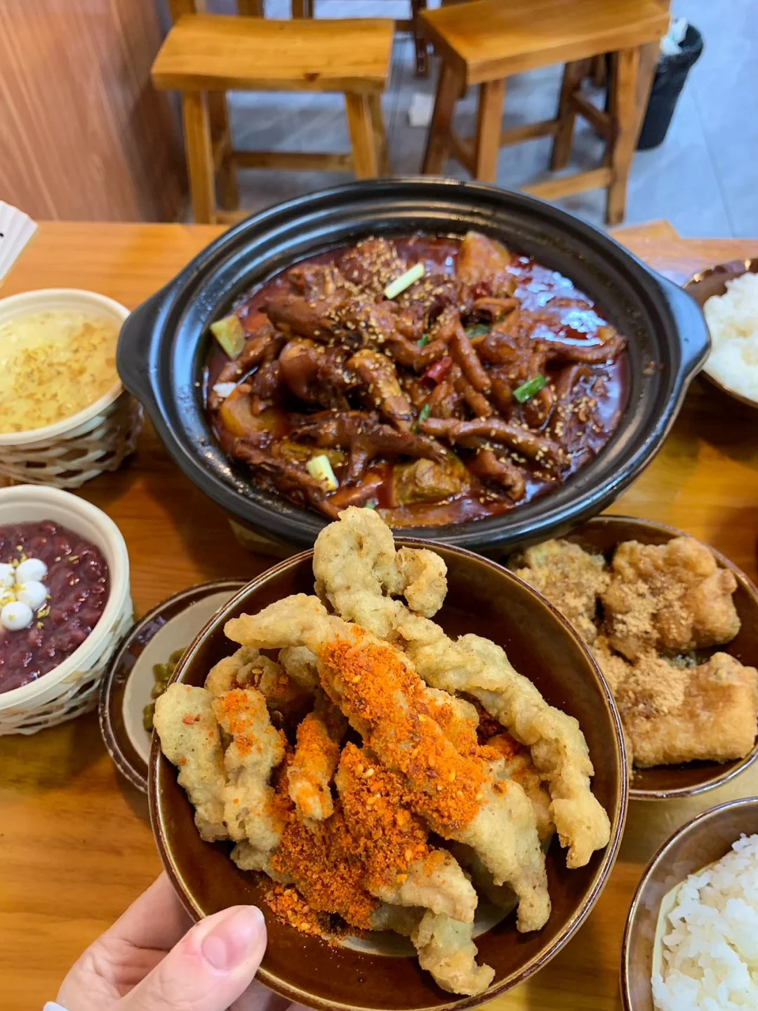 主打砂锅鲜烧煲+米线,猪蹄鸡爪煲直接封神,软烂到一抿就脱骨,虎皮鸡爪吸满汤汁,超好吃!