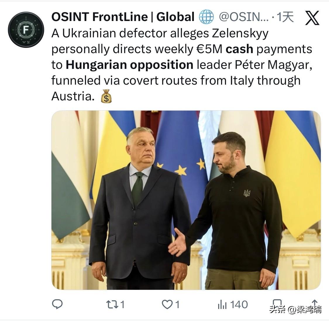 一名乌克兰情报官员逃到了匈牙利,爆出内幕:从2025年11月开始,泽林斯基每周给匈牙利的反对党500万欧元现金,作为他们竞选经费,希望大选中(4月12日投票)打败保守派政府。今奥尔班总理发表讲话:匈牙利不会被泽林斯基们打倒,要捍卫自己国家主权。前一段泽林斯基的武装运钞车在过境匈牙利时被截扣,车里有8000万美元现金和9公斤黄金。9名押送人员后被释放,但钱仍在扣。两国关系急剧恶化。