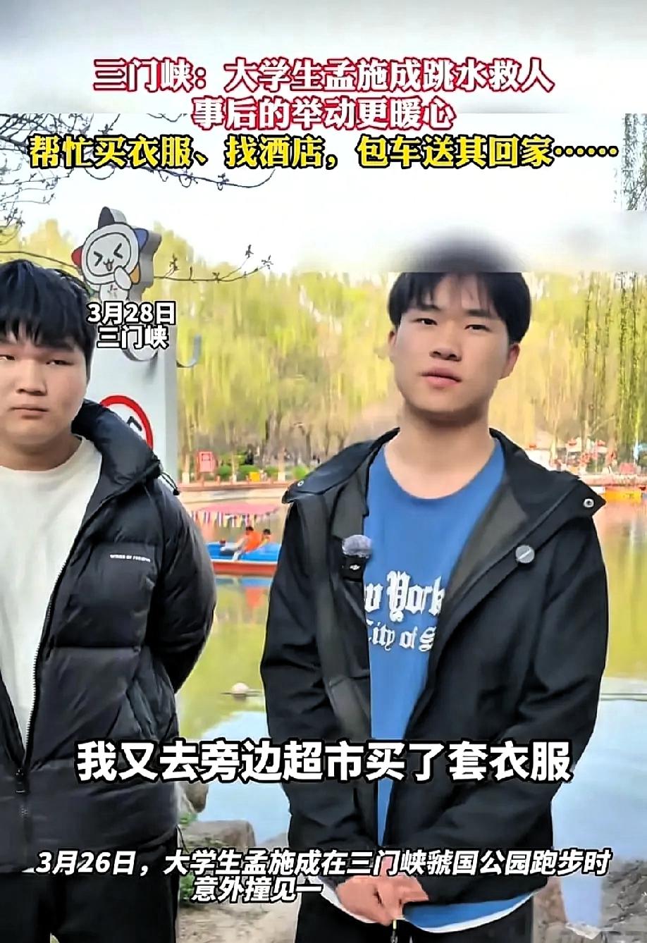河南三门峡20岁大学生孟施成在公园跑步。撞见一名女子掉进了水里。孟施成没有多想跳入水中把女子救起。 河南20岁大学生救人暖全网,身处困境仍传递善意,值得点赞 事后,他细心为女子购置干净衣物,安排酒店住宿,次日还包车将女子送回西安家中,全程贴心周到,不求回报。 这位善良的大学生,自身处境却十分艰难。母亲去年因癌症离世,父亲随后确诊重病住进ICU,巨额治疗费让家庭陷入困境。作为家中长子,孟施成一边完成学业,一边在郑州街头通过才艺表演、直播卖山药筹集医药费,疲惫时就听母亲生前的语音支撑自己,一路走来也得到了不少人的帮助。 孟施成表示,正是因为曾接受过他人的善意,所以更想把这份爱心传递下去。即便自己身处困境,面对他人危难,他依然毫不犹豫伸出援手,用行动诠释着感恩与担当。 善良从不是顺境中的锦上添花,而是逆境里的力所能及。孟施成没有被生活的磨难打倒,反而以善意温暖他人,这份纯粹与坚守,正是当代青年的可贵之处。他的举动不仅温暖了被救者,也感动了无数网友,彰显着人性的美好。 这样有担当、懂感恩的年轻人,值得更多关注与支持。面对生活的重压仍坚守善意,你是否也被这份温暖打动?