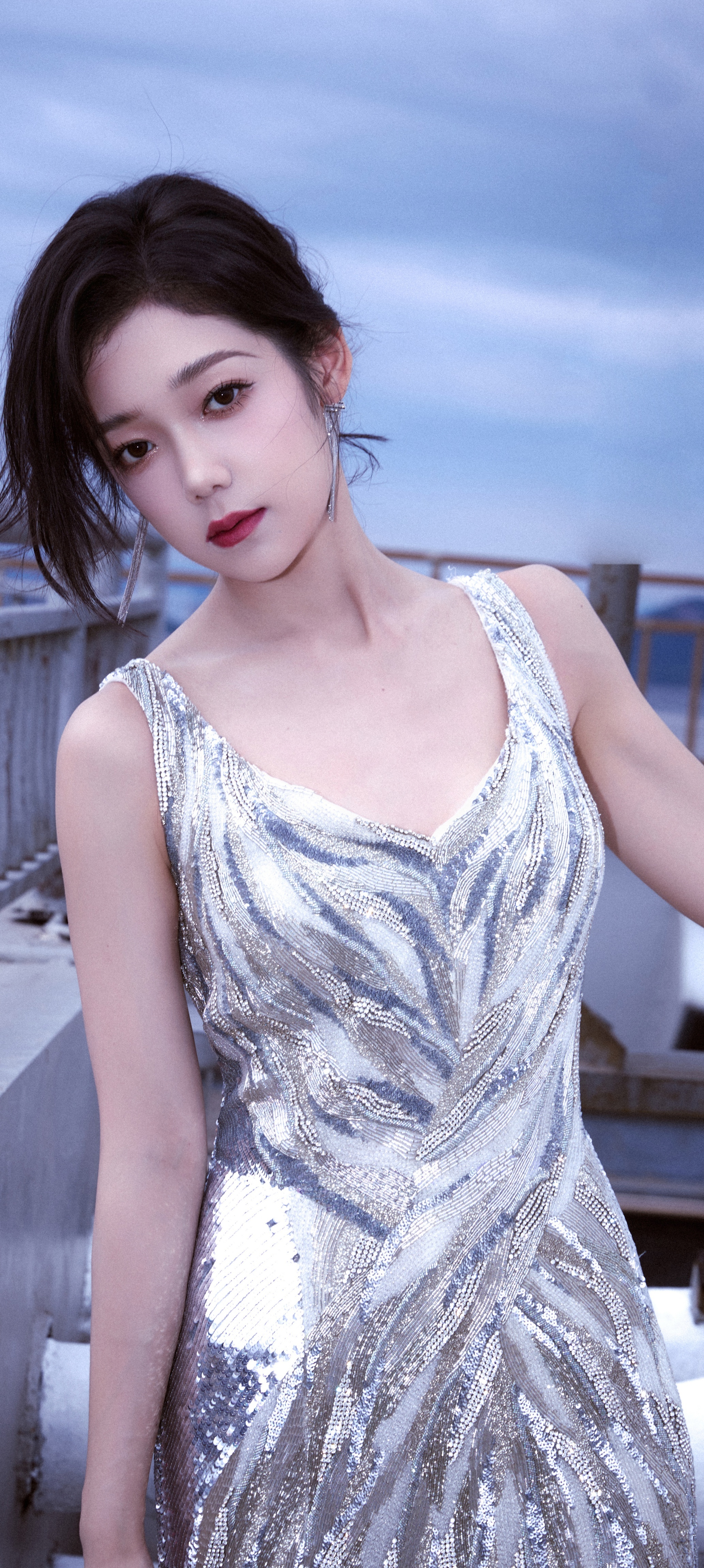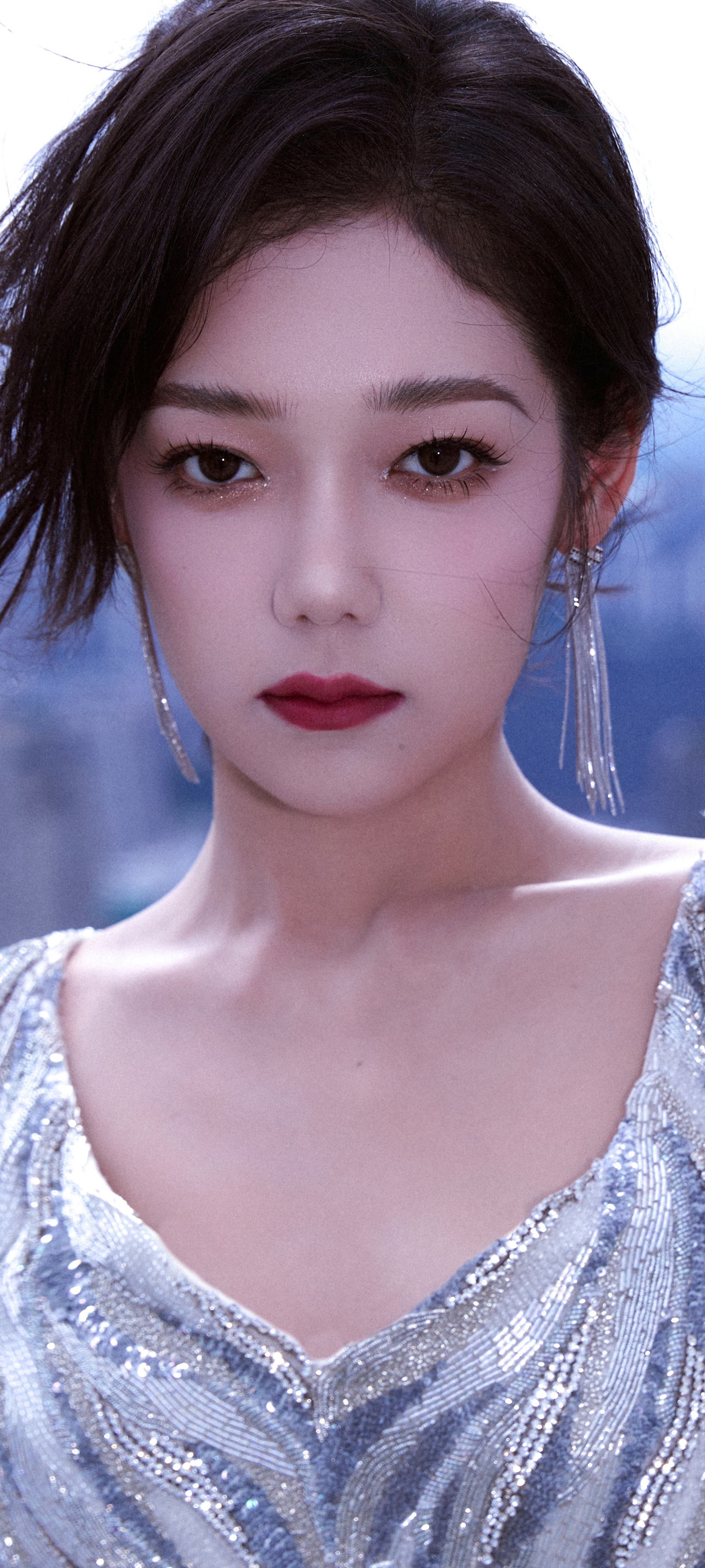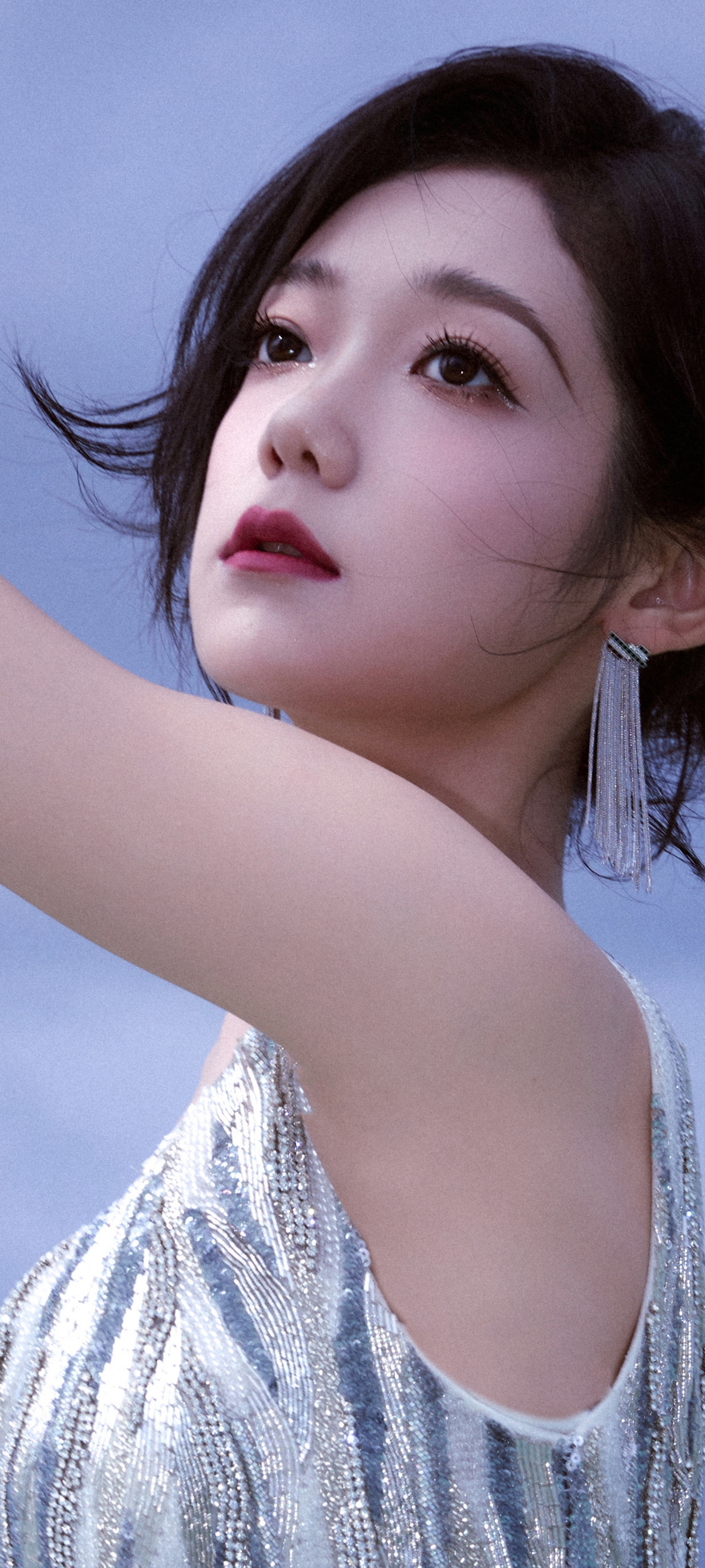希林娜依高穿搭壁纸:扎发红唇,银河涌动,星芒洒落。希林娜依高