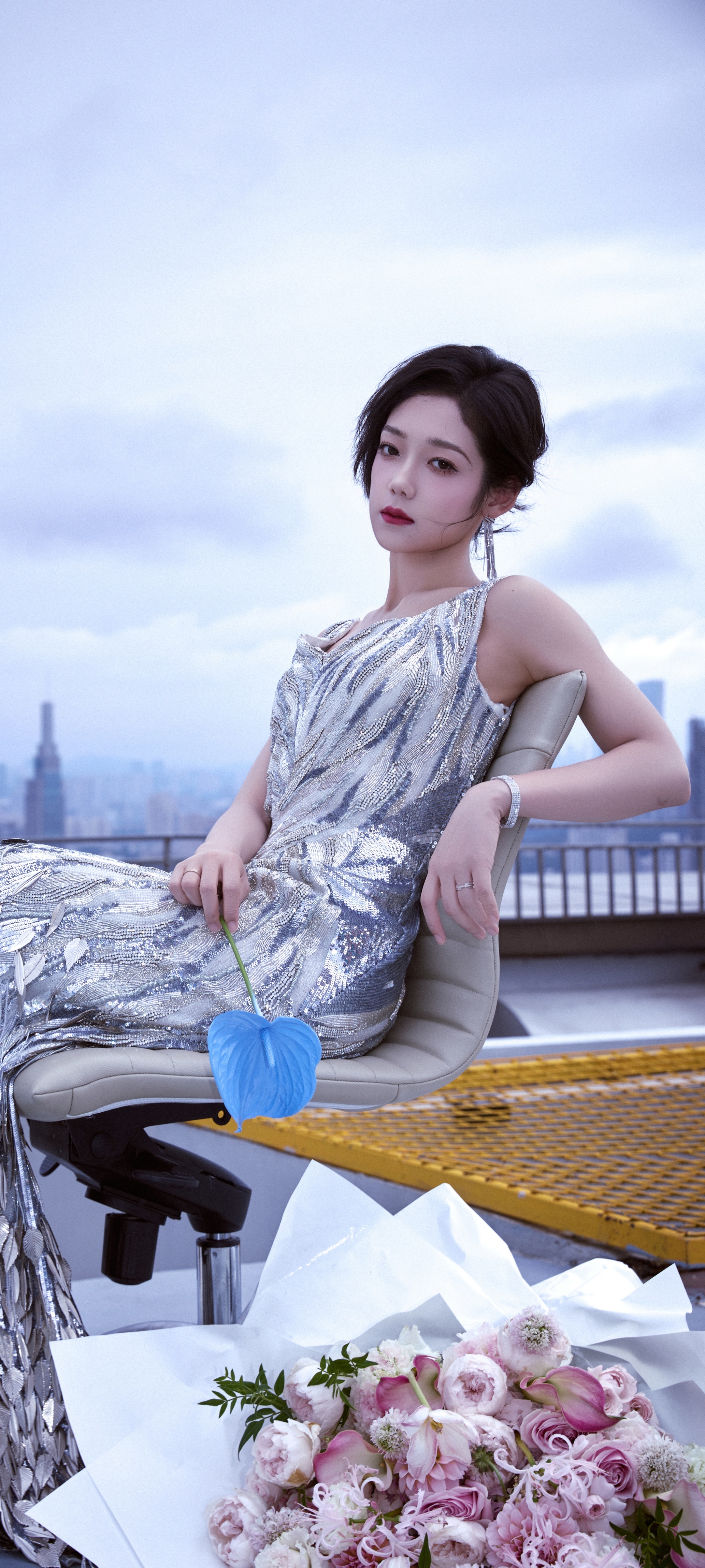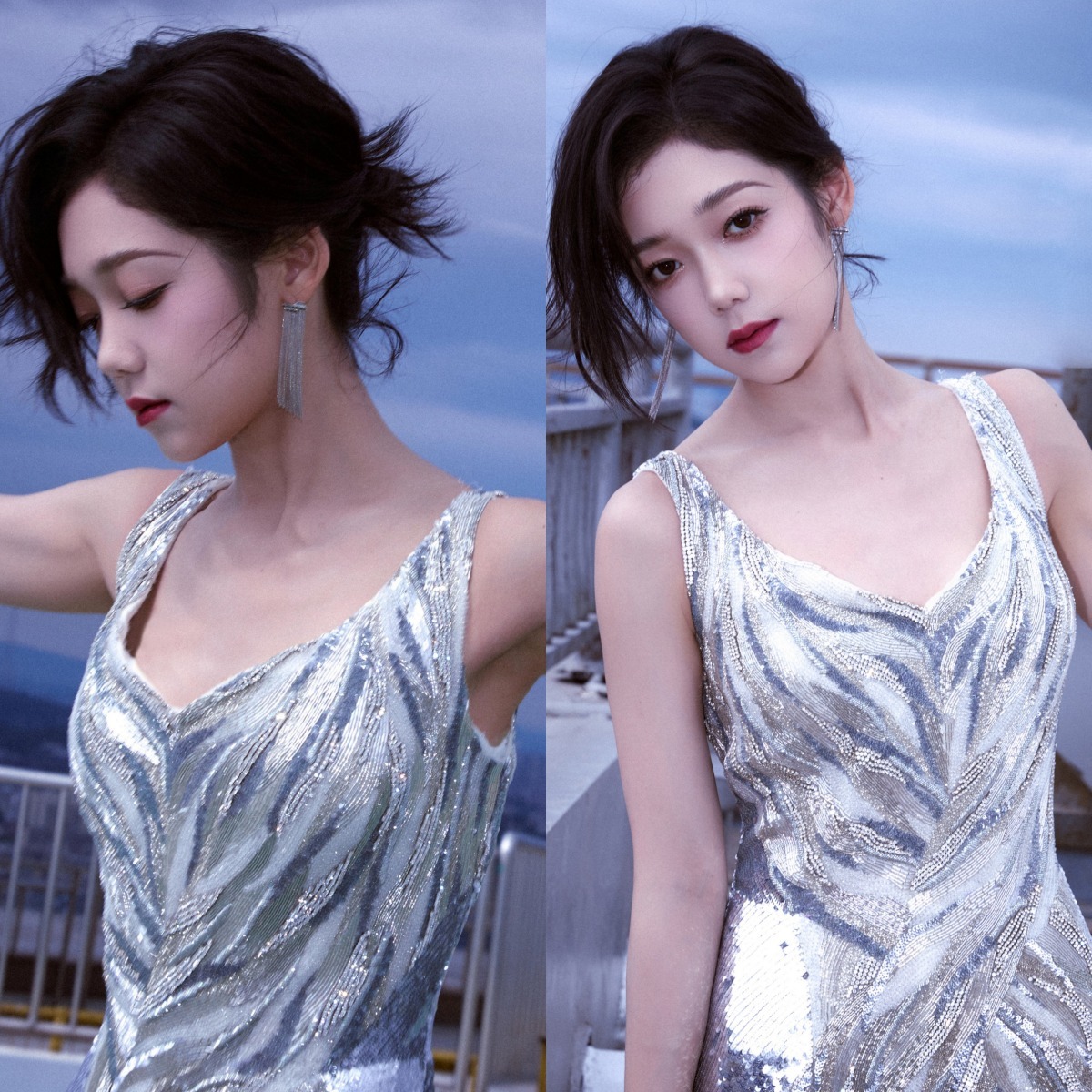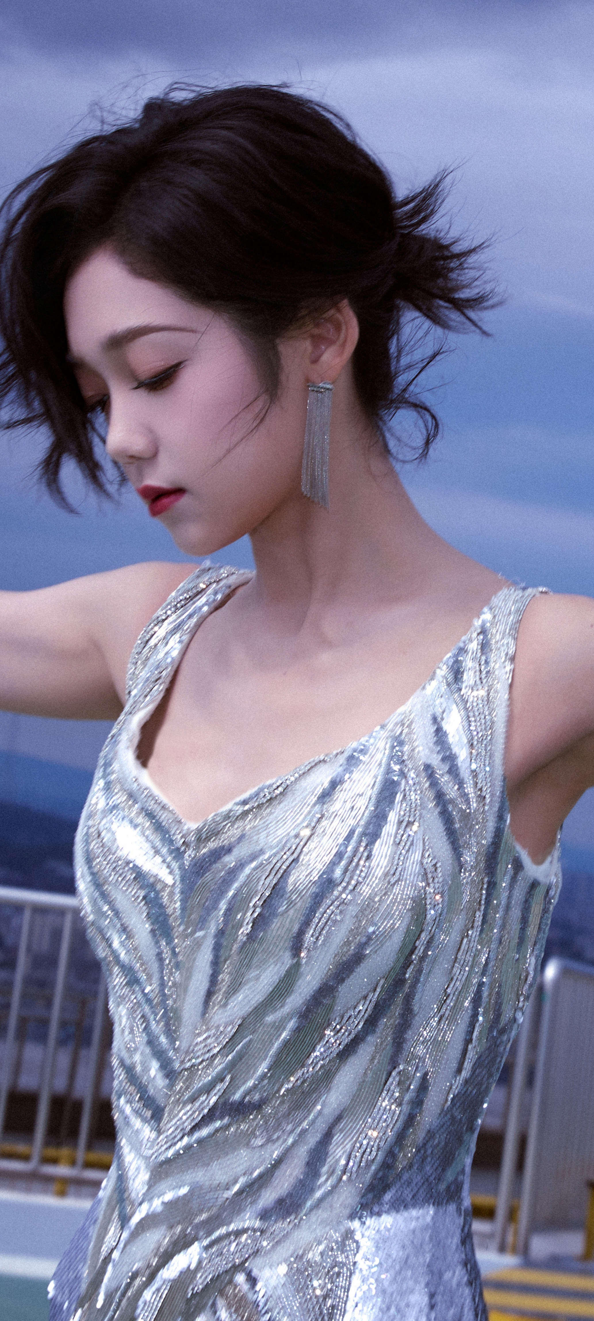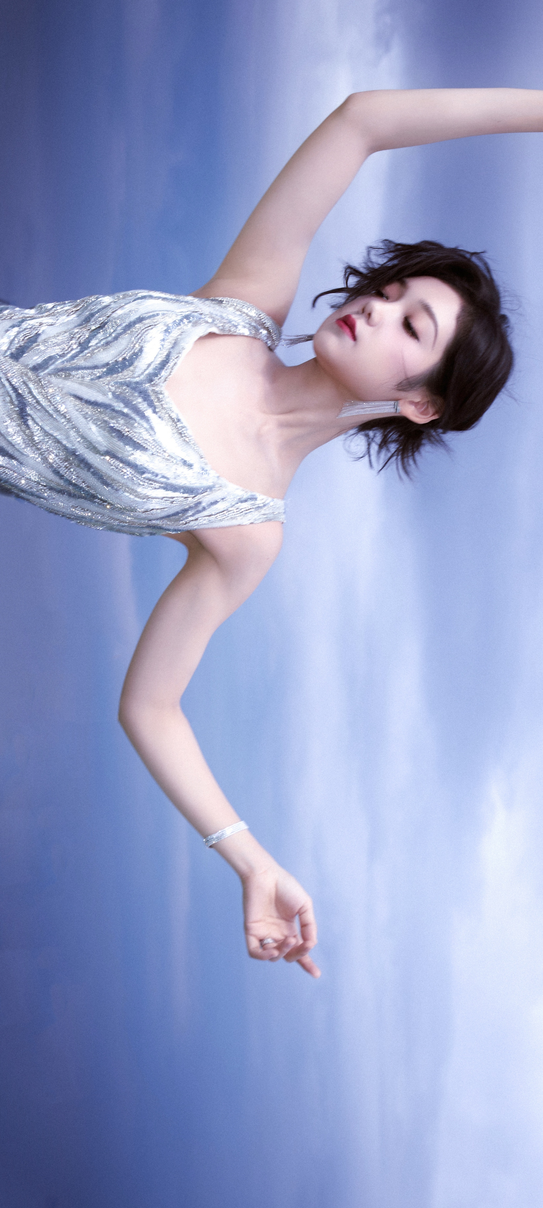 希林娜依高穿搭壁纸:扎发红唇,银河涌动,星芒洒落。希林娜依高