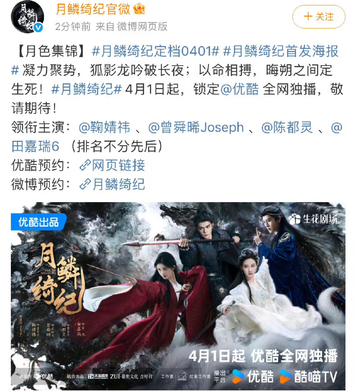 鞠婧祎工作室声明新剧定档被爆税务问题,但鞠婧祎方已积极配合完成相关抽查、检查程序