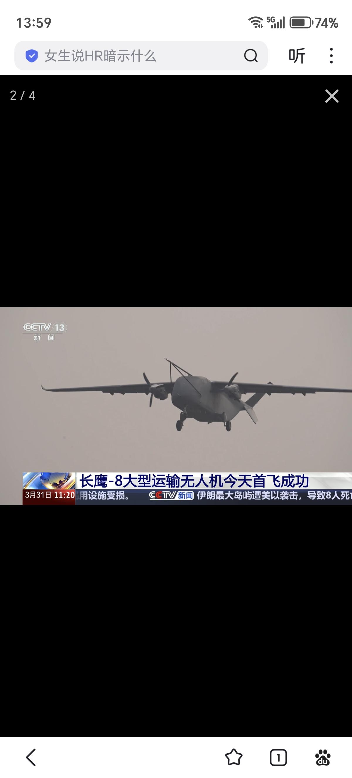 长鹰8首飞画面,新闻中称长鹰8大型运输无人机成为全球目前首飞成功的最大无人运输机