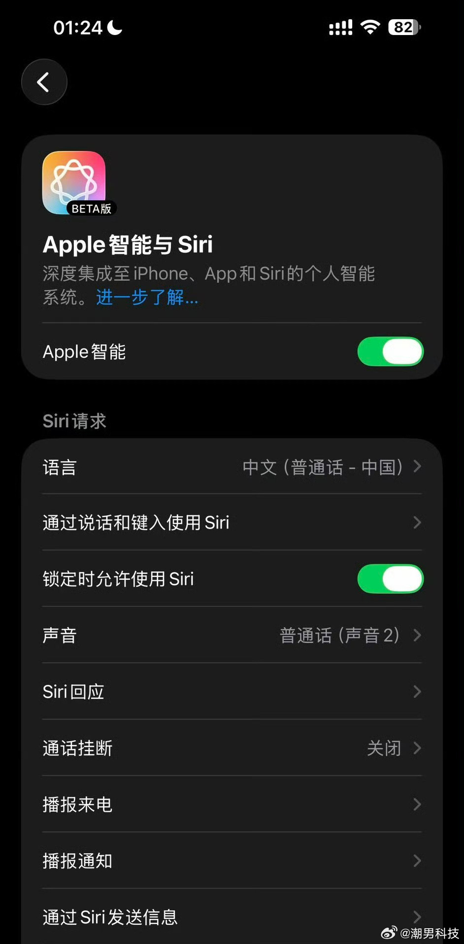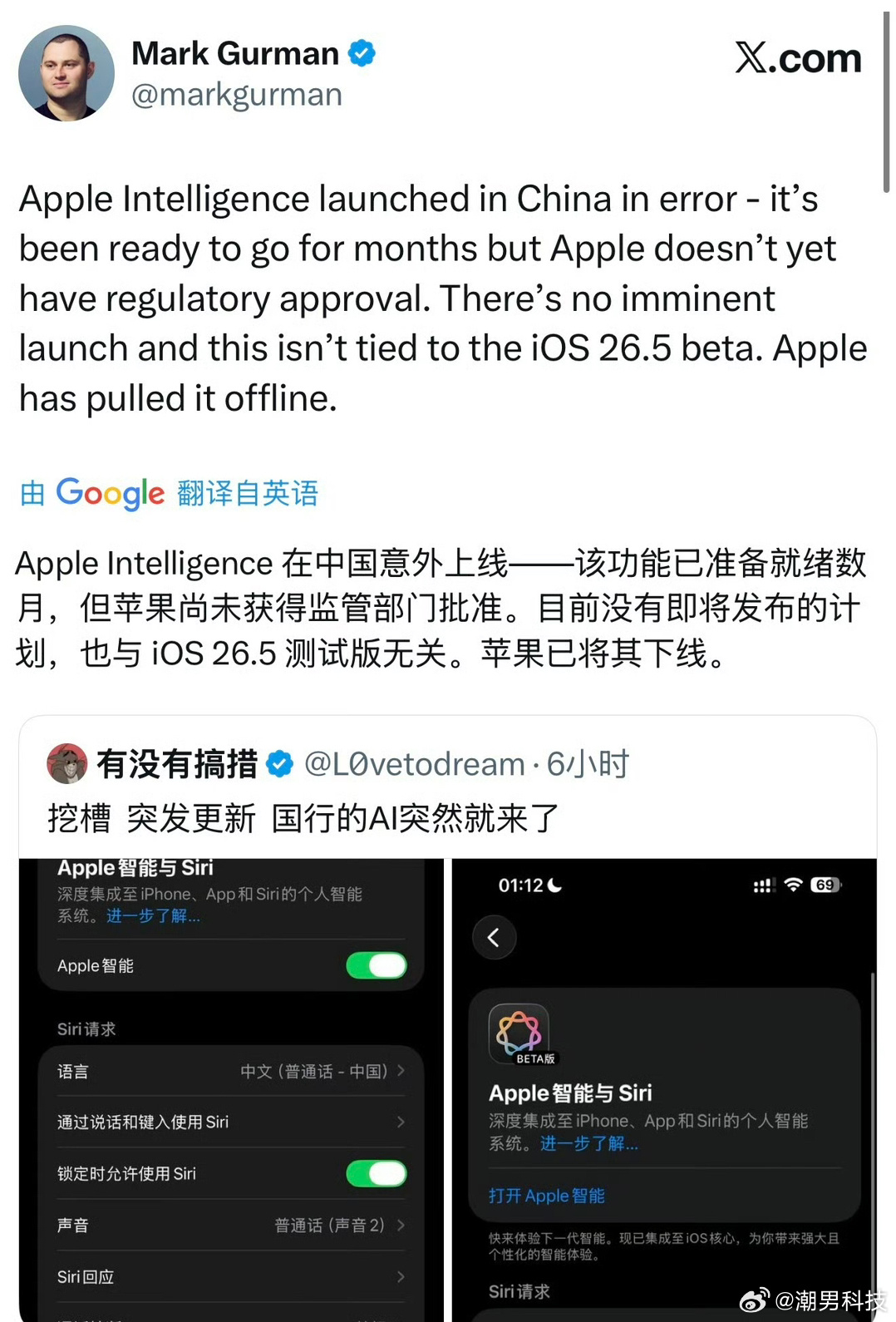 今天凌晨苹果失误推送了Apple智能(国行AI),现在已经下载不了了,凌晨更新iPhone系统的赚到了国行版苹果AI苹果AI国行上线或是乌龙