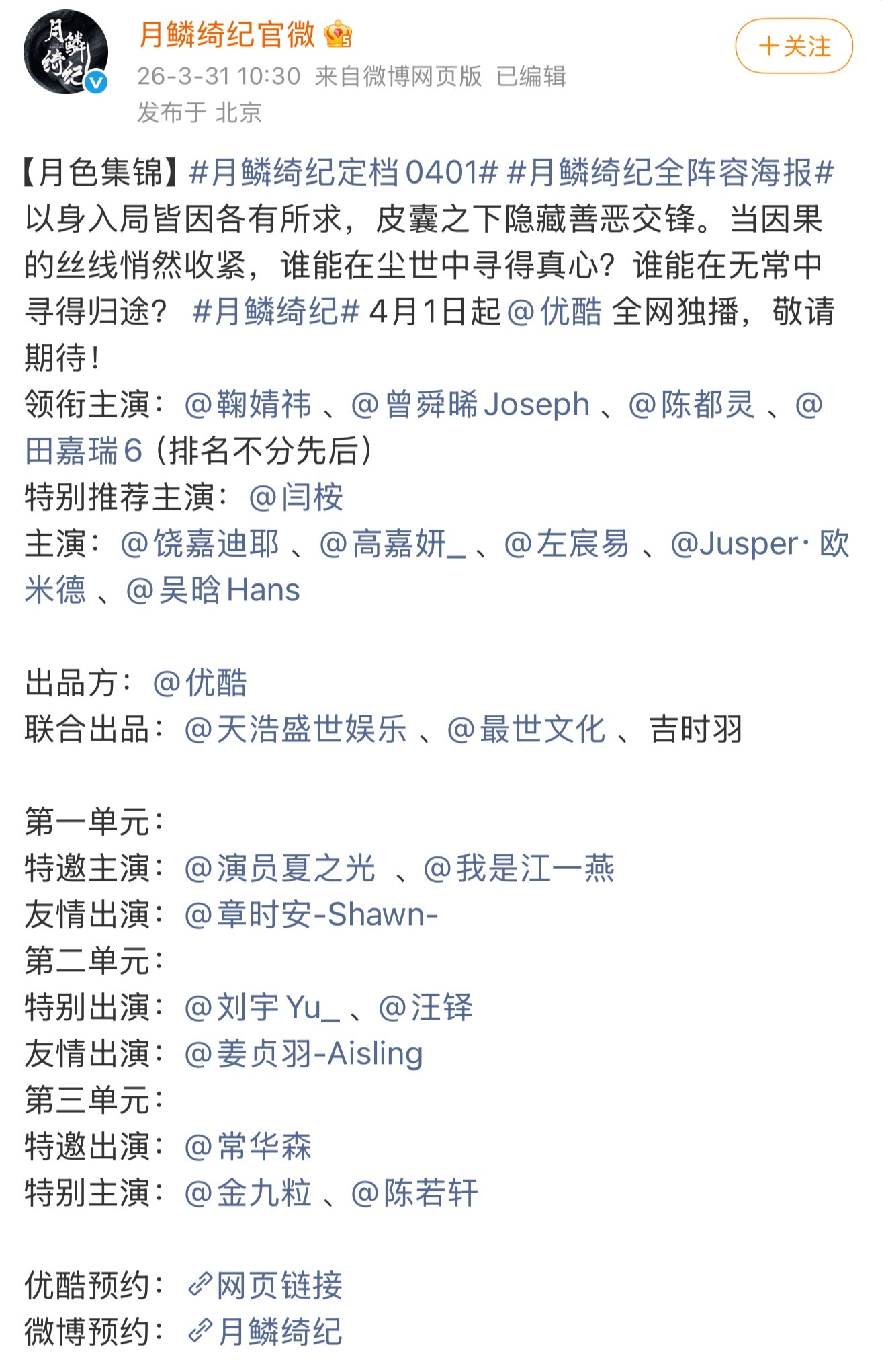 范世錡工作室 尊重剧方宣发安排工作室回应月鳞绮纪定档删除范世錡