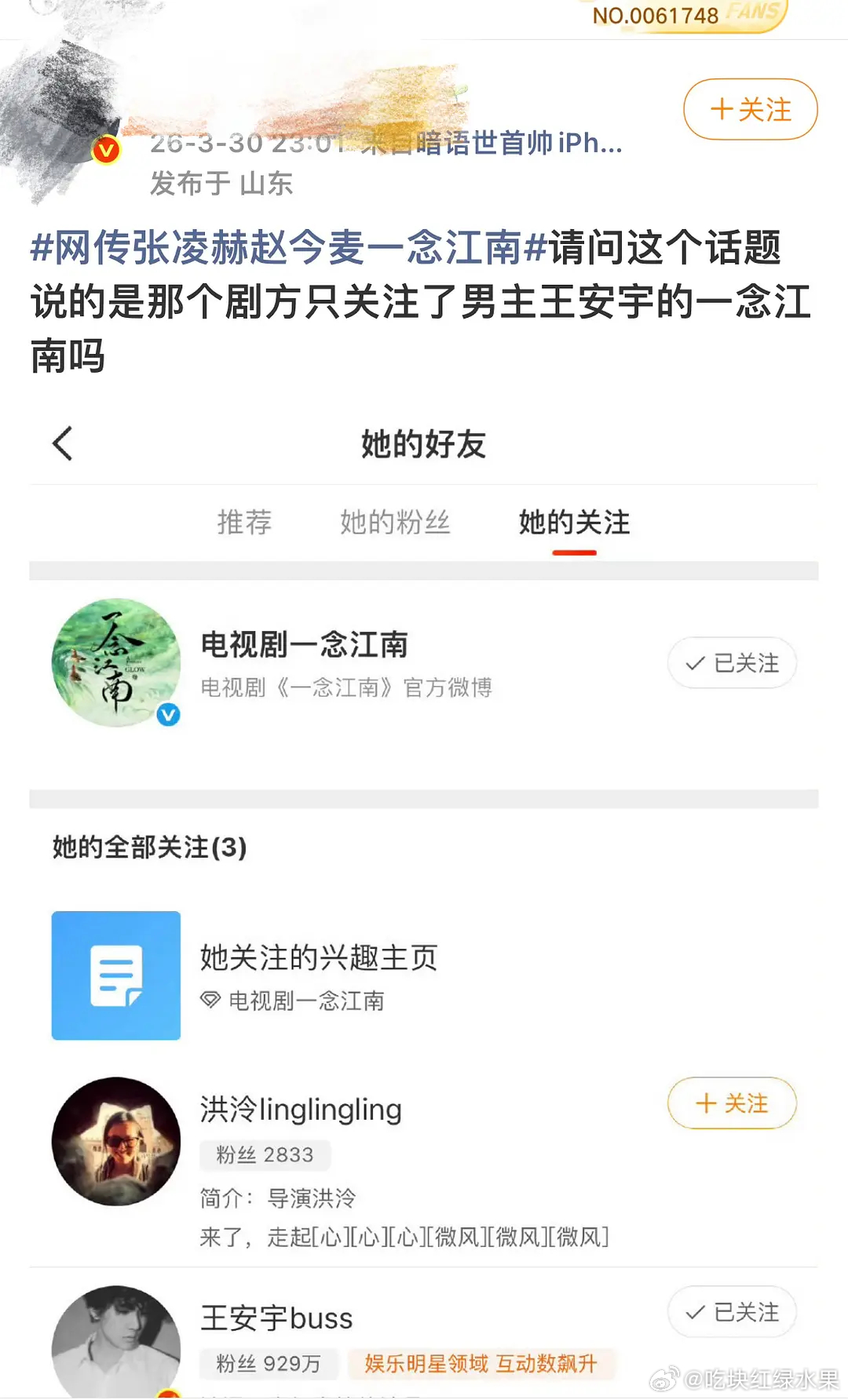 张凌赫粉丝和王安宇粉丝 因为一念江南开始相互维权