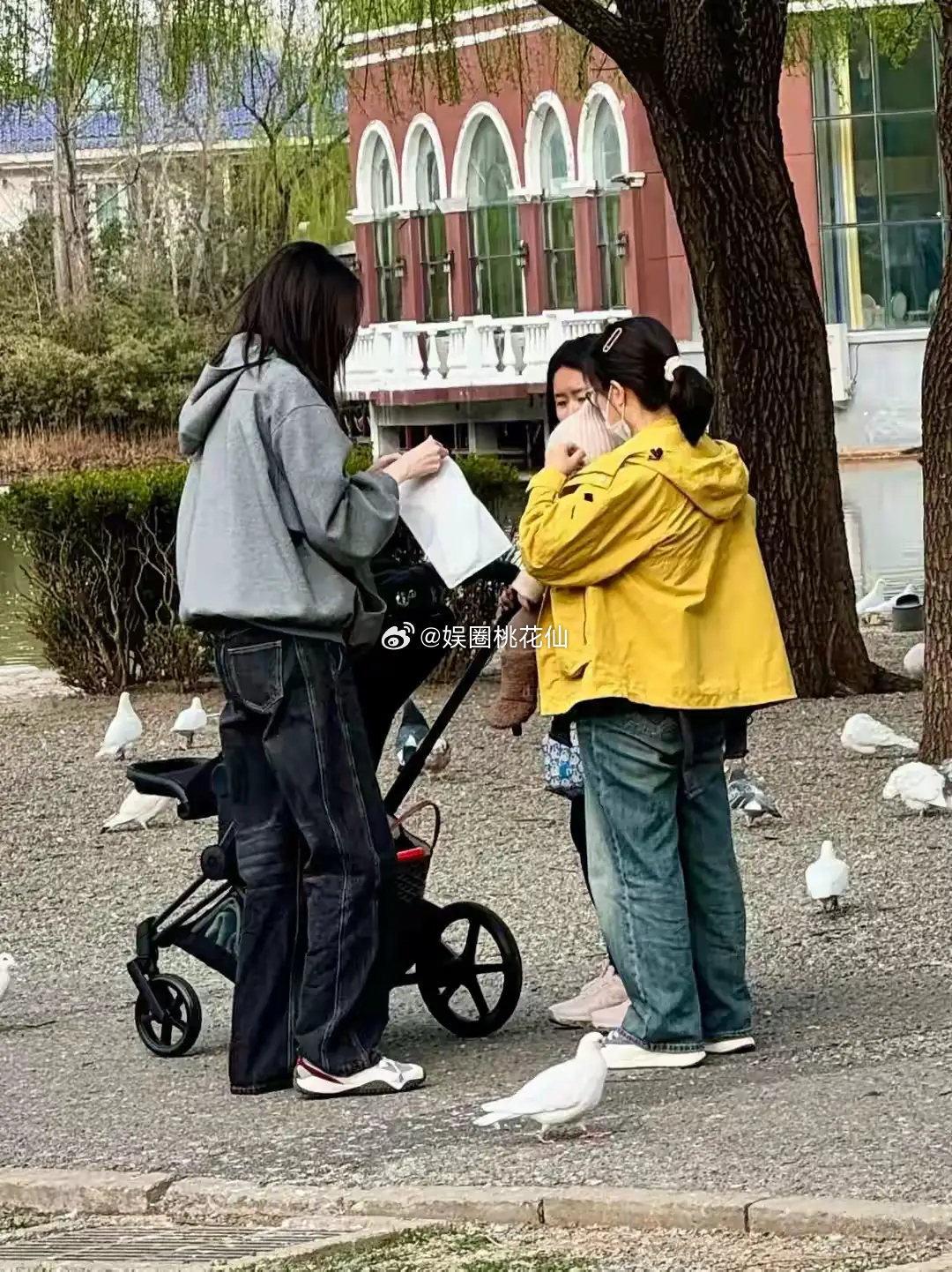 何穗带着7个月的儿子逛公园,和新手妈妈都差不多穿着很朴素宽松的,个子是真的很高,还有两个保姆帮忙,一个抱着一个推婴儿车,何穗主要负责陪伴孩子玩