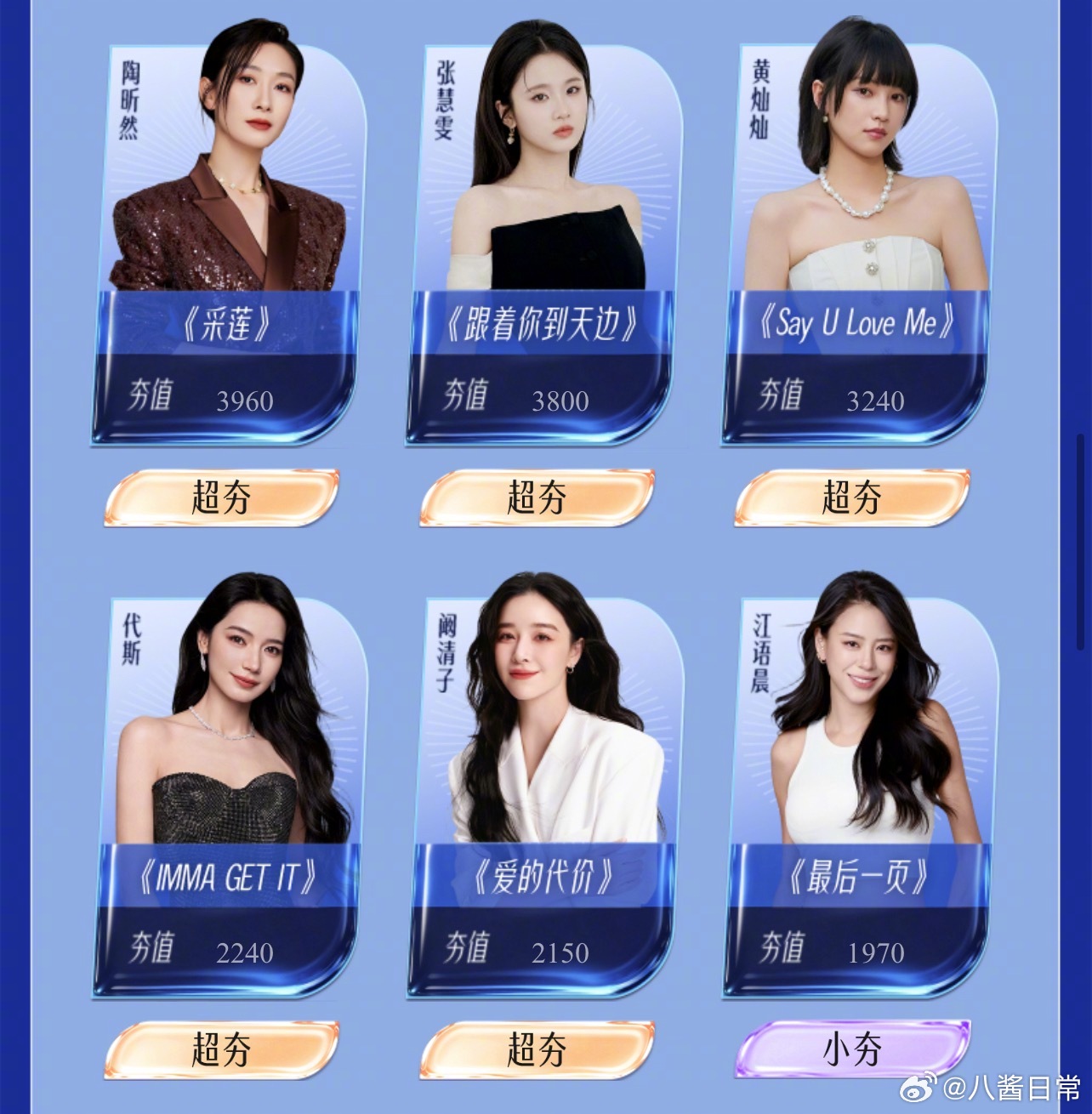 《乘风2026》(浪姐7)初舞台人气榜,曾沛慈以14680夯值断层登顶,领先第二